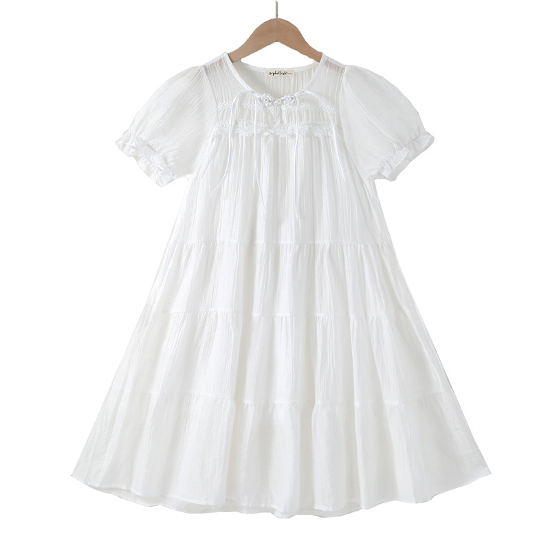 亲子装女童短袖连衣裙小学生公主裙2026夏天中国风中大童白色裙子 投诉