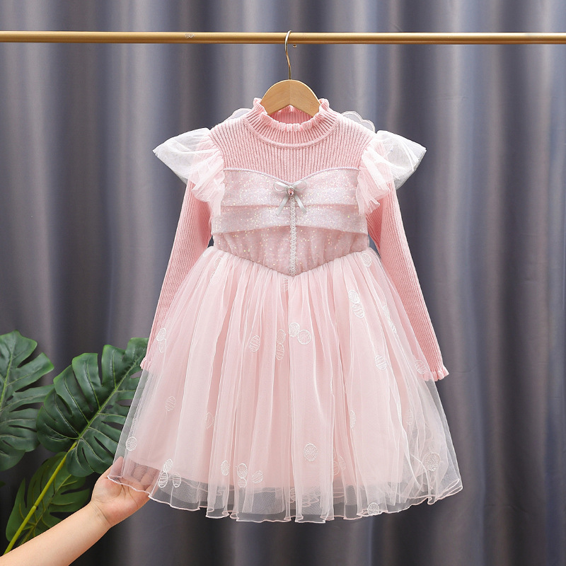 女童毛衣连衣裙春秋中大童长袖公主裙小女孩秋装洋气甜美针织裙子