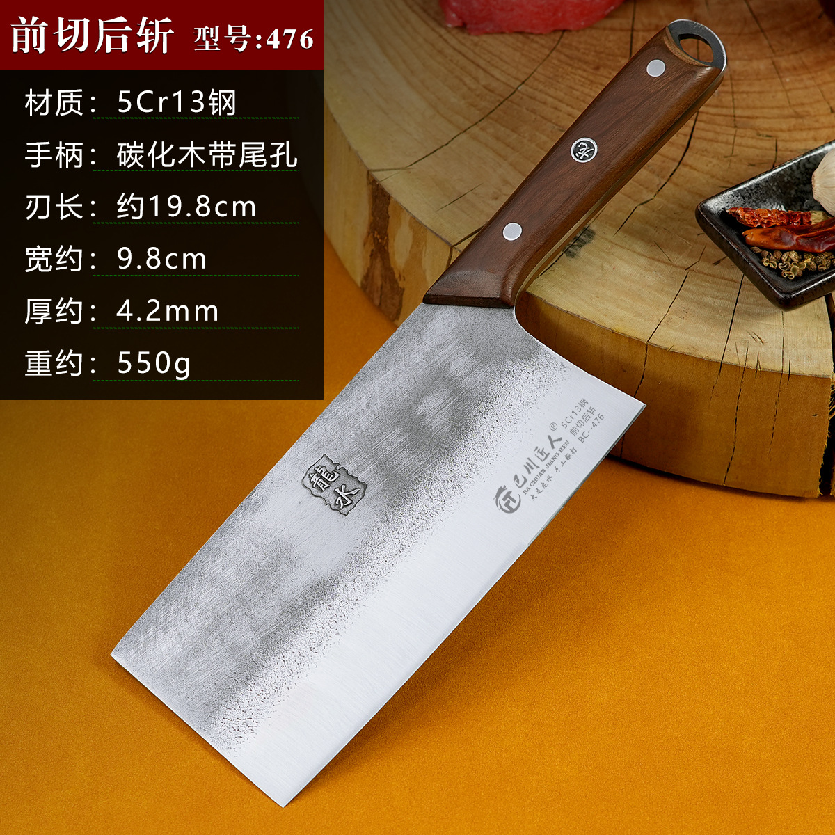 龙水锻打斩切两用刀古龙手工家用厨房厨师专用锋利切菜切片刀