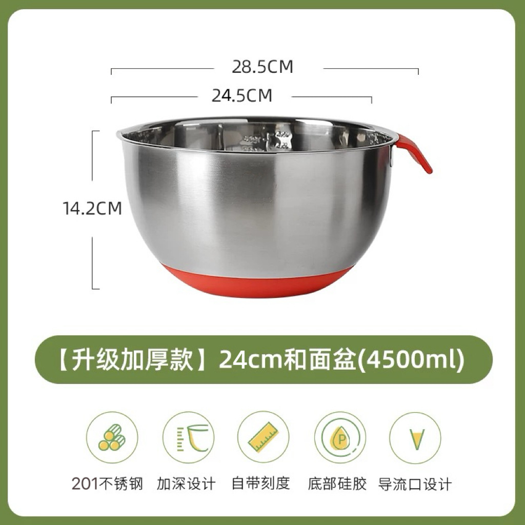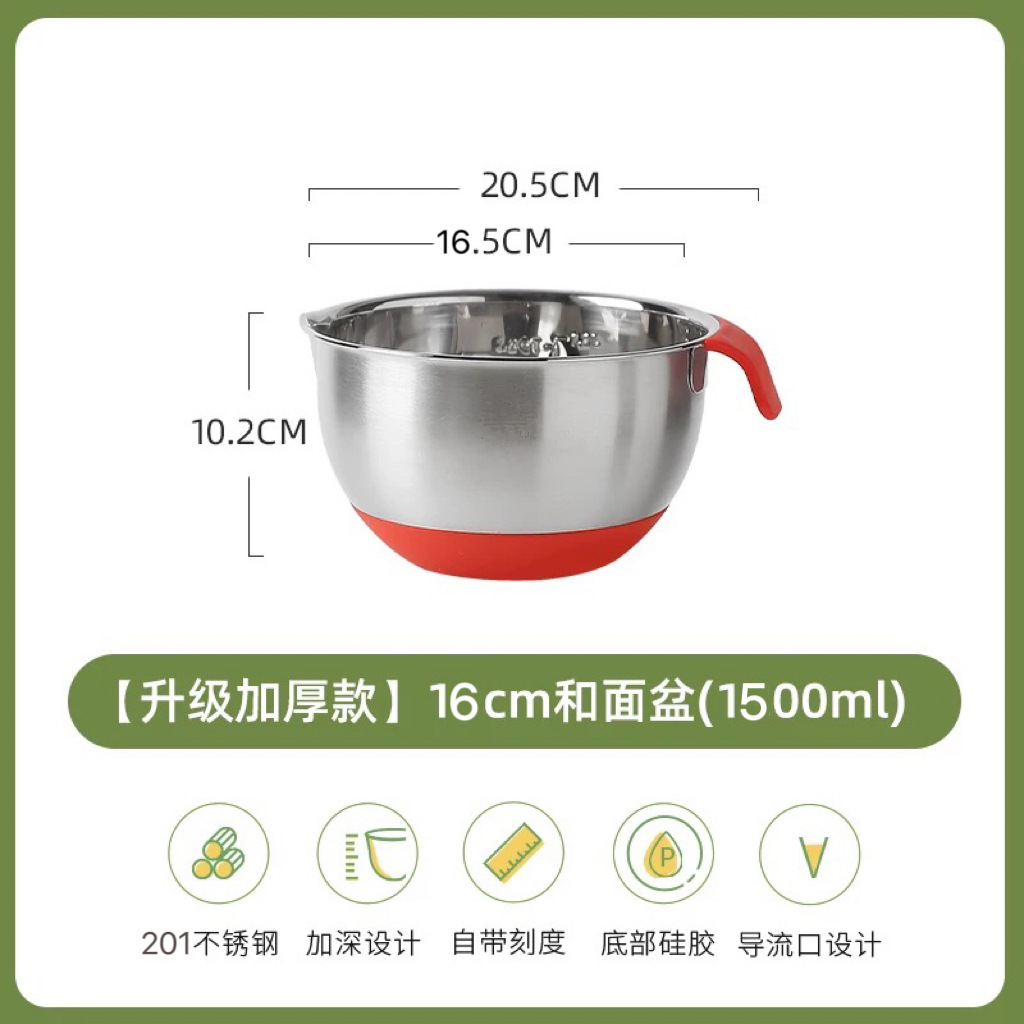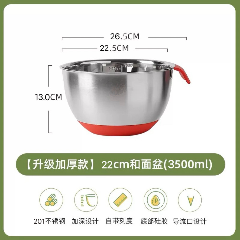 不锈钢食品级带刻度手柄料理盆洗菜烘焙工具揉面和面打蛋盆把手