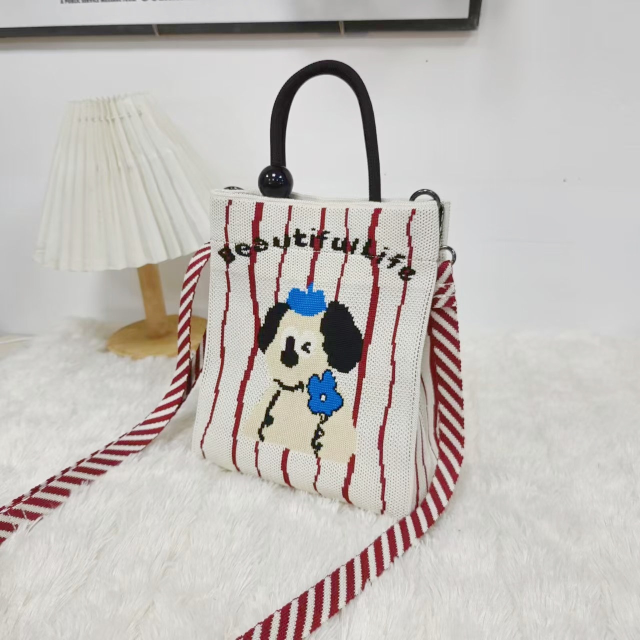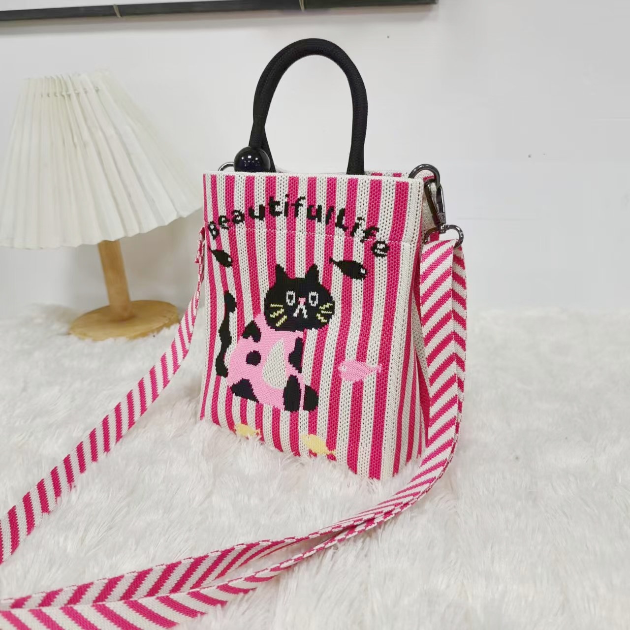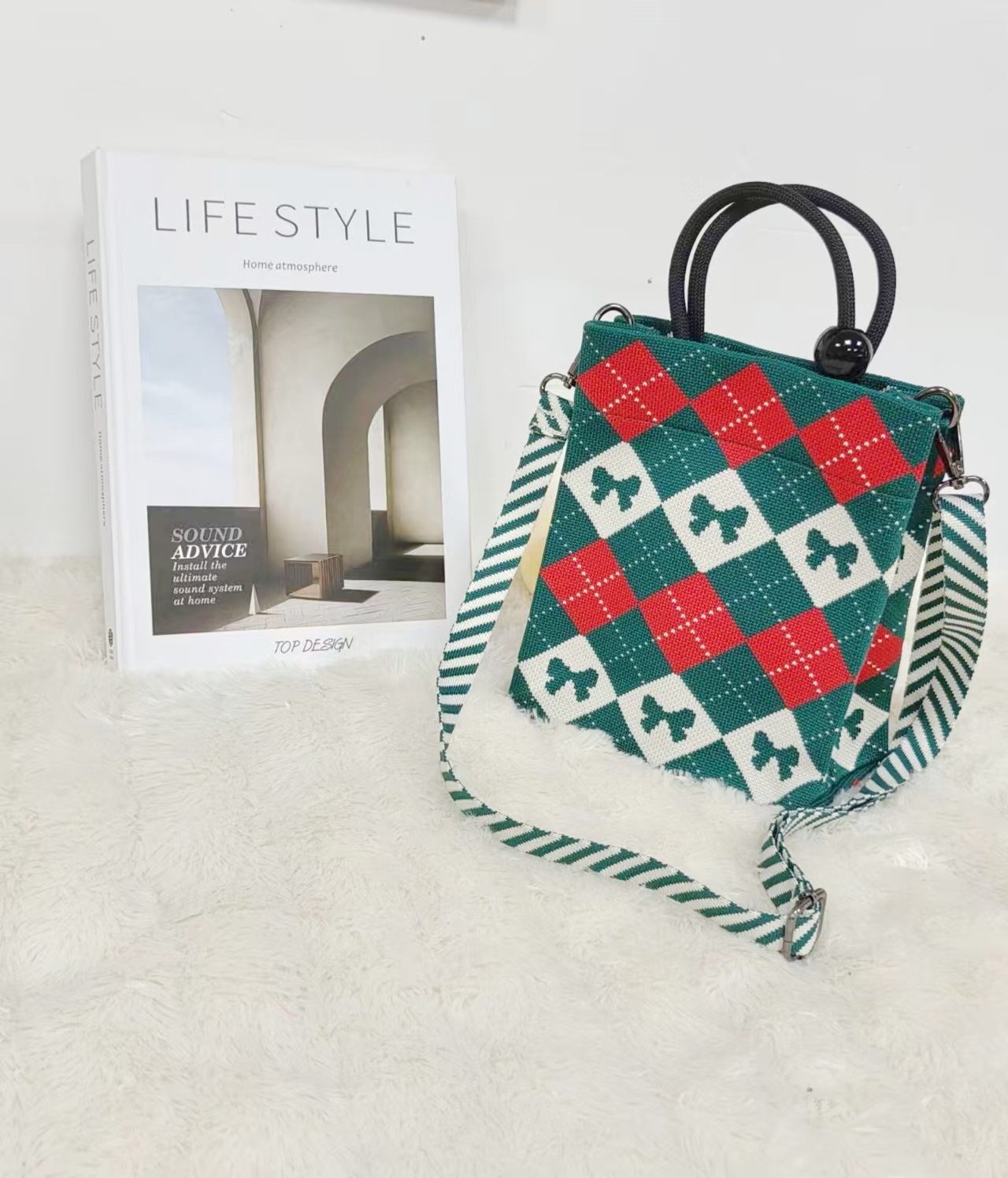 秋冬新款菱格棉服包休闲托特包女大容量单肩包百搭水桶包手提包