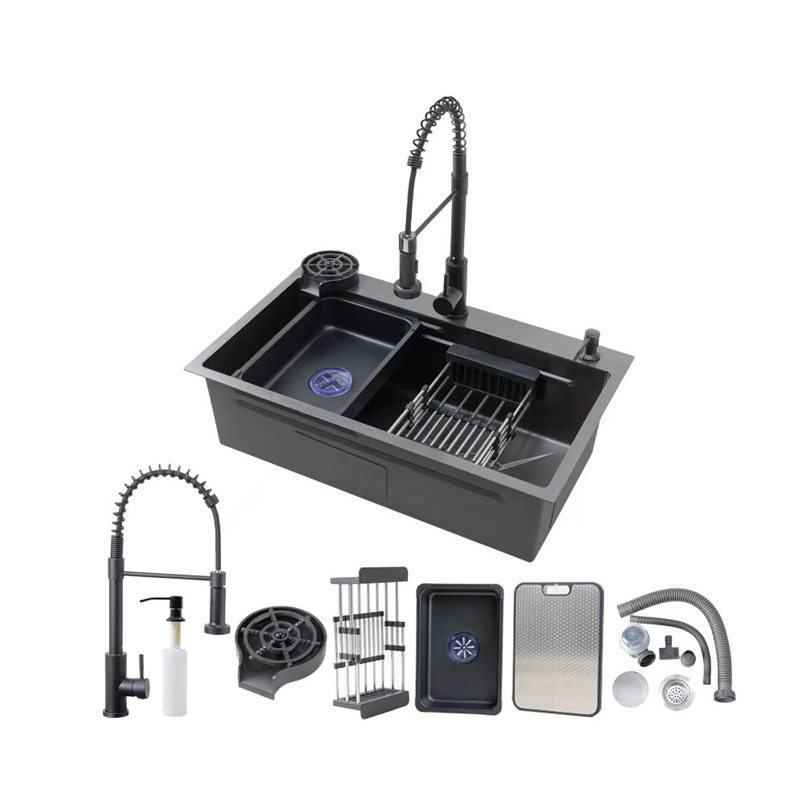 跨境直供不锈钢水槽纳米7545大单槽弹簧抽拉龙头厨房洗碗池洗菜盆