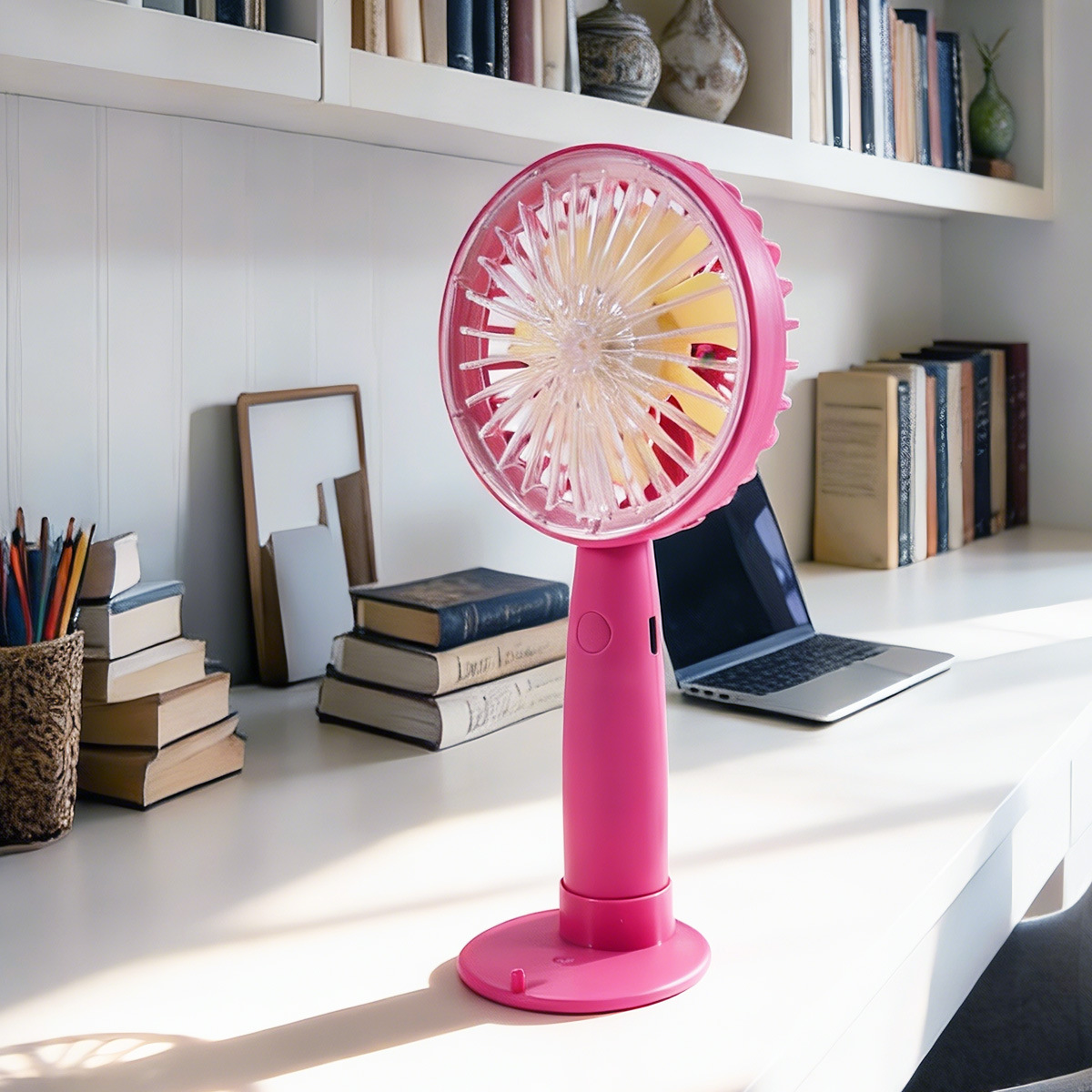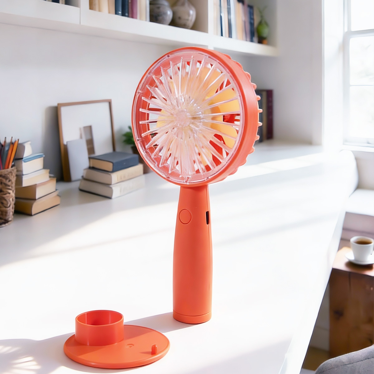 手持迷你风扇简约手持带底座USB充电手机支架跨境风扇手持迷你风