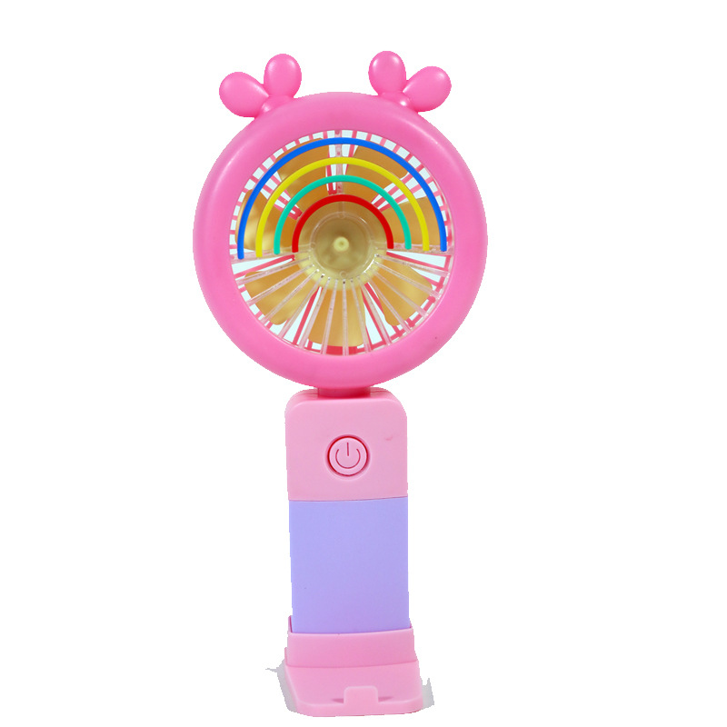 卡通彩虹灯光迷你手持风扇手充电六一儿童节伴手礼广告宣传礼品