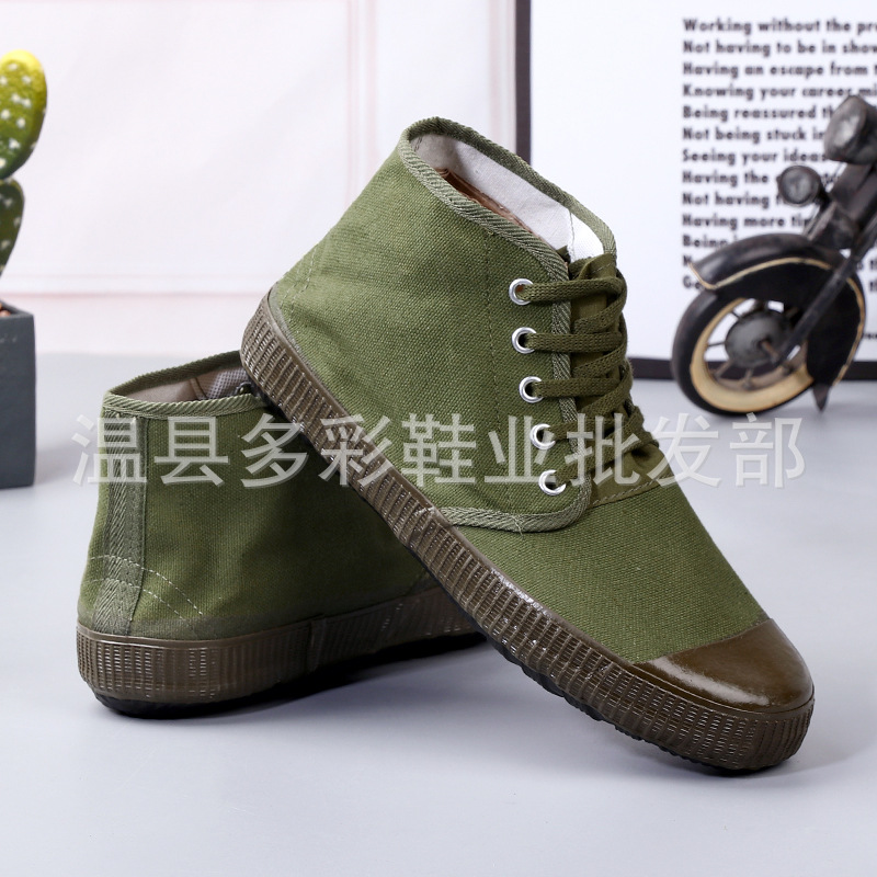 橡胶底迷彩鞋农田民工解放胶鞋工地黄胶鞋劳保作训鞋