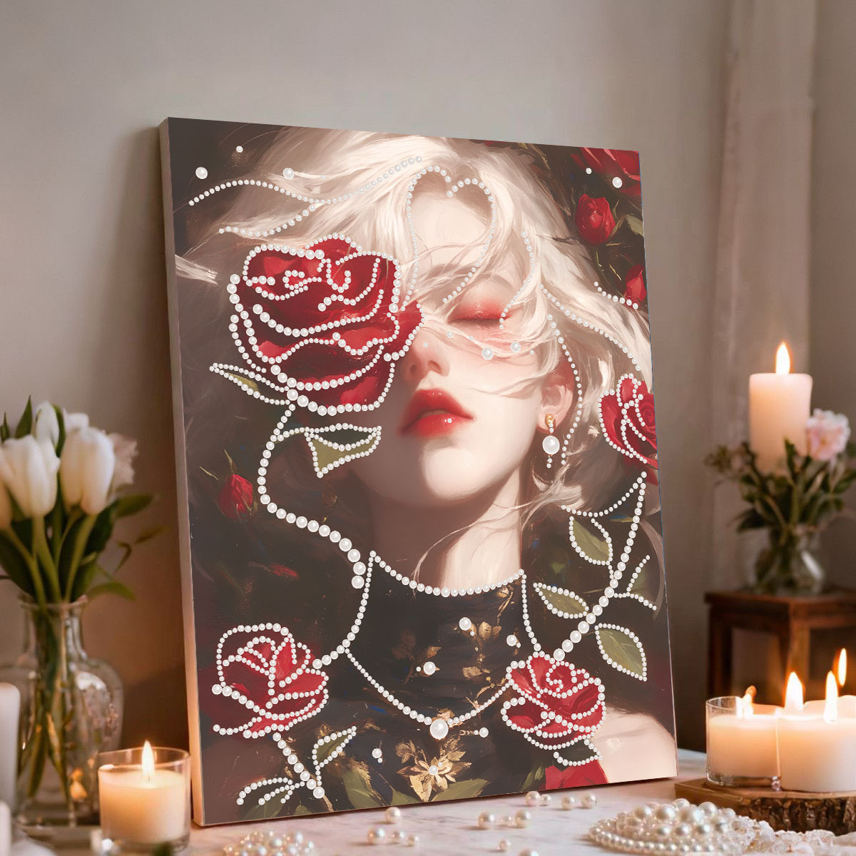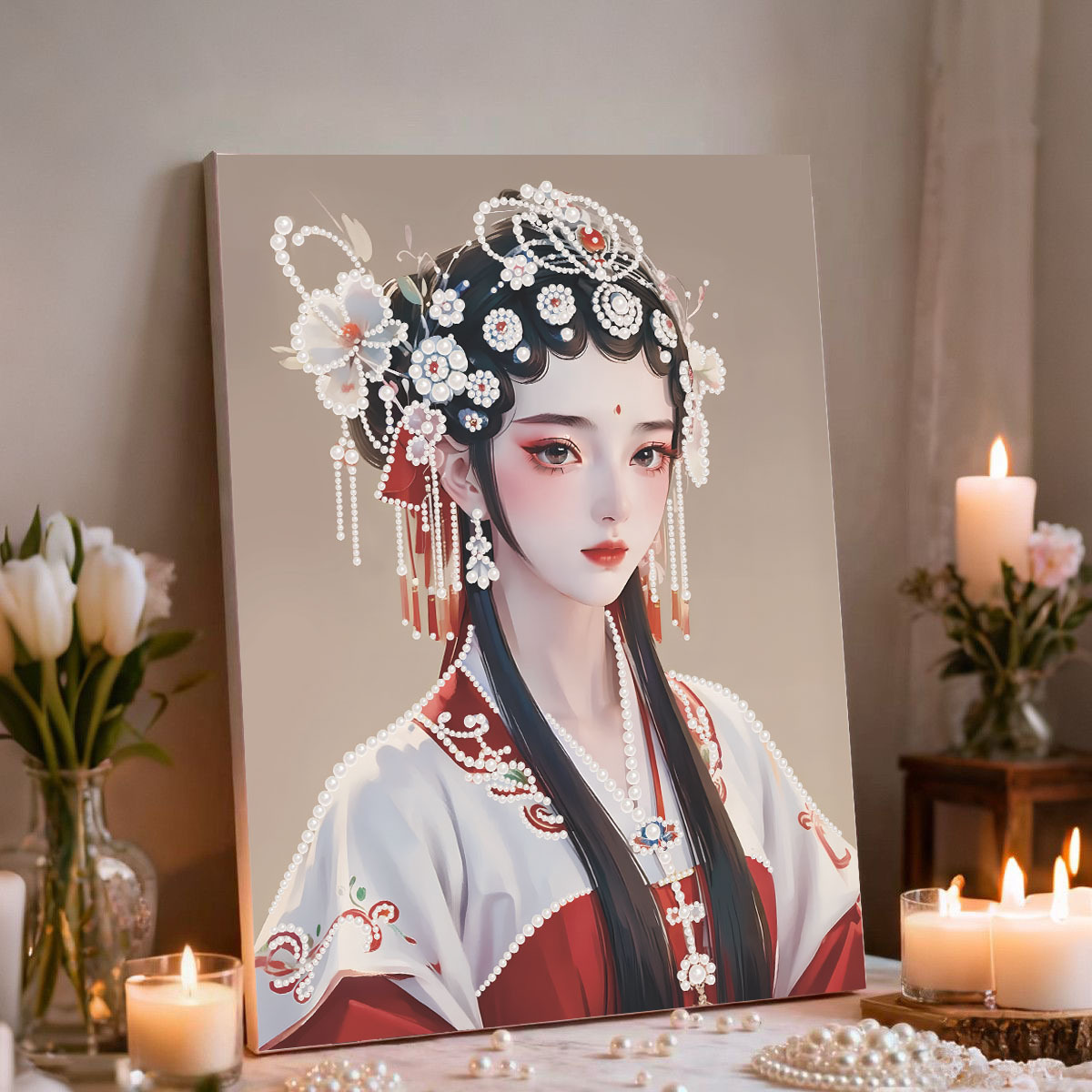 30*40绷好内框+工具+珍珠