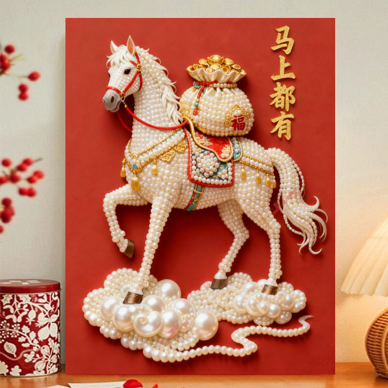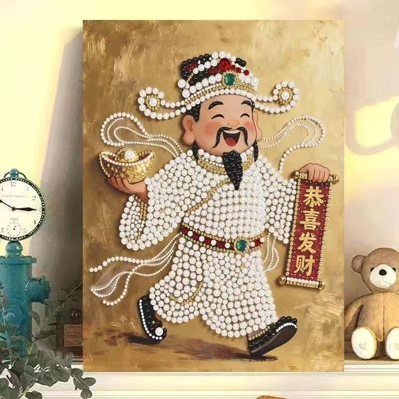 珍珠画diy财神珍珠贴画自粘款结婚喜庆送闺蜜结婚礼物装饰画