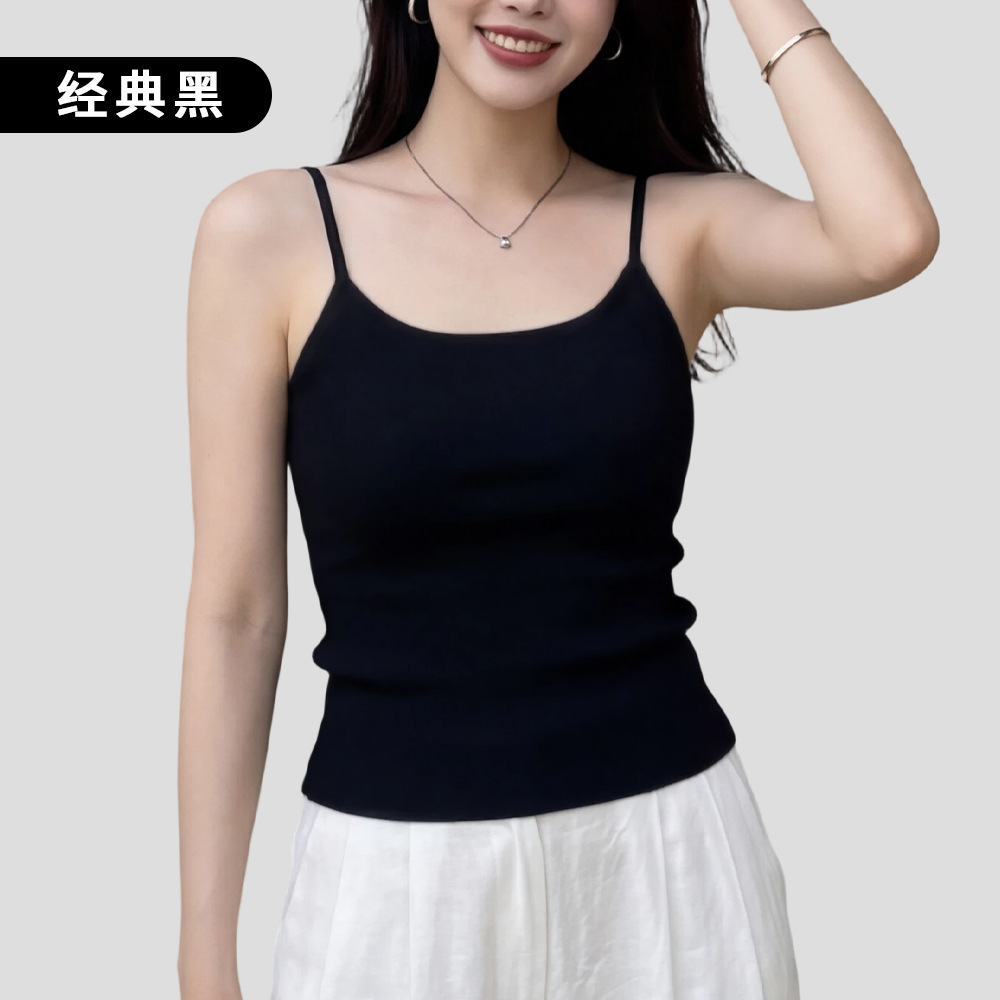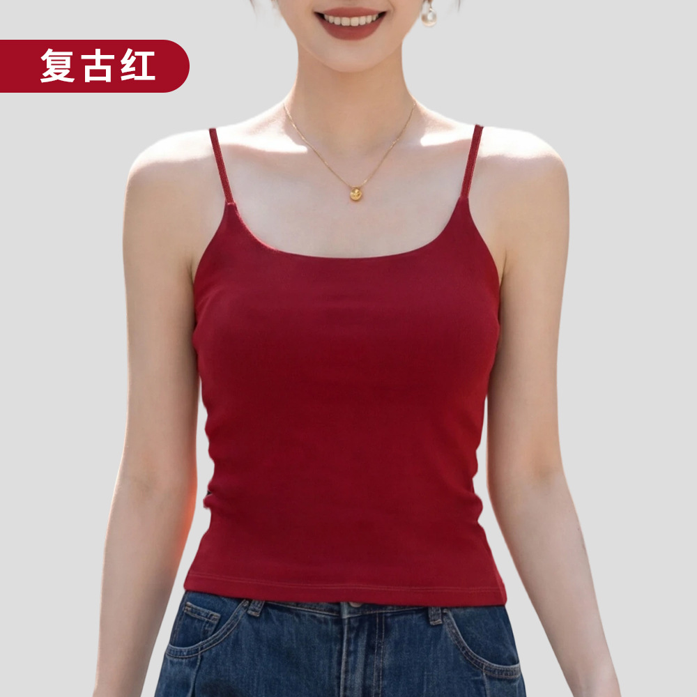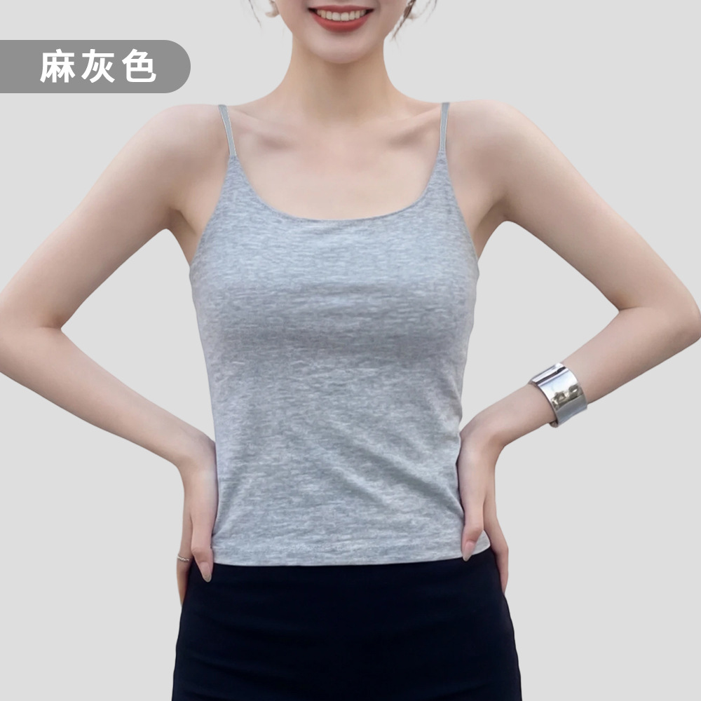 纯色网红美背吊带背心女8010修身打底带胸垫百搭抹胸褶皱显瘦上衣