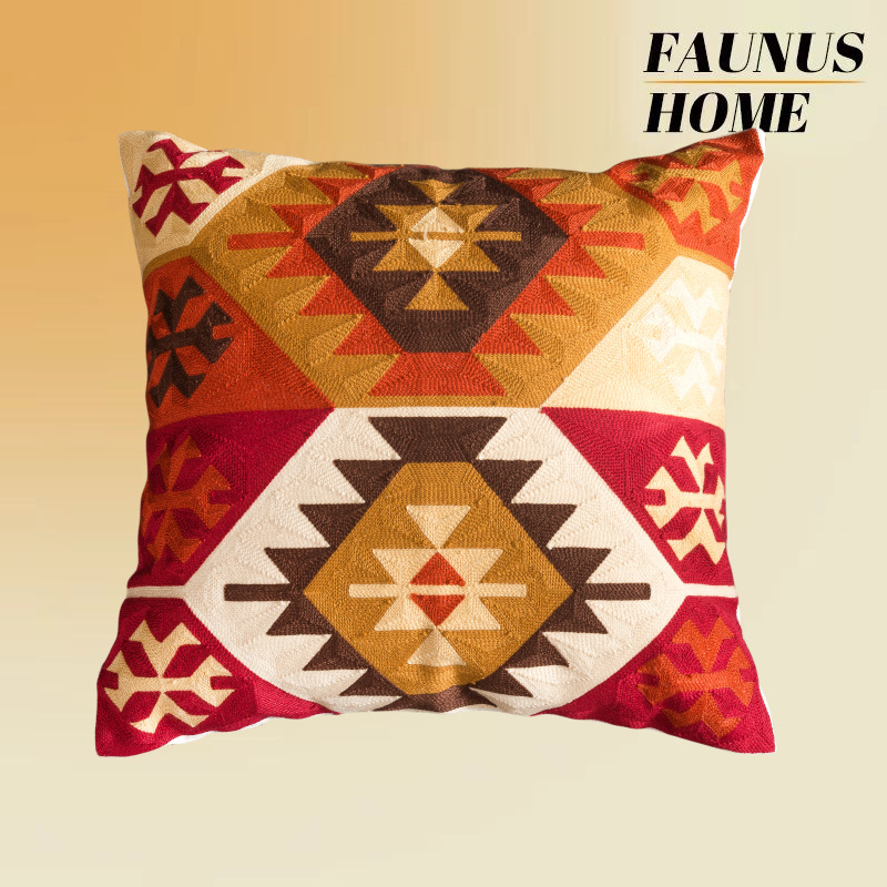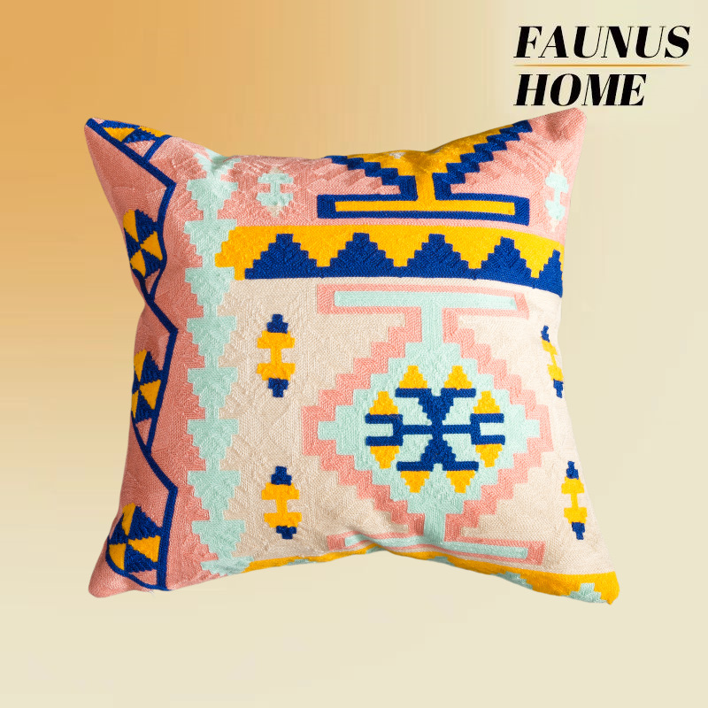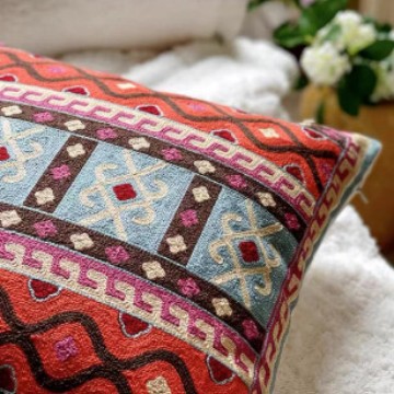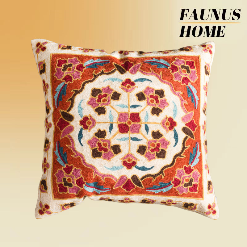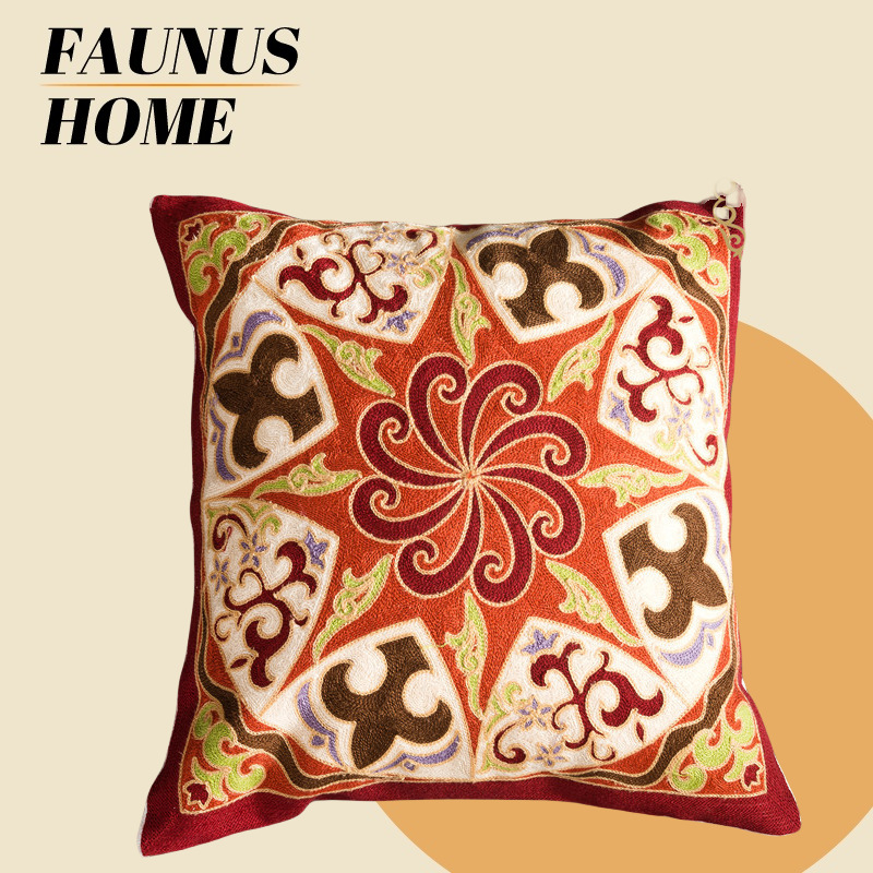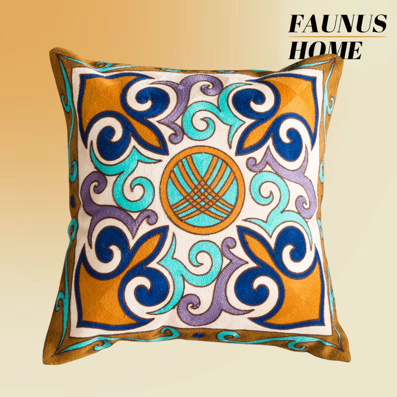 来图定制波西米亚风土耳其粗棉麻满绣哈萨克民族靠垫套刺绣抱枕