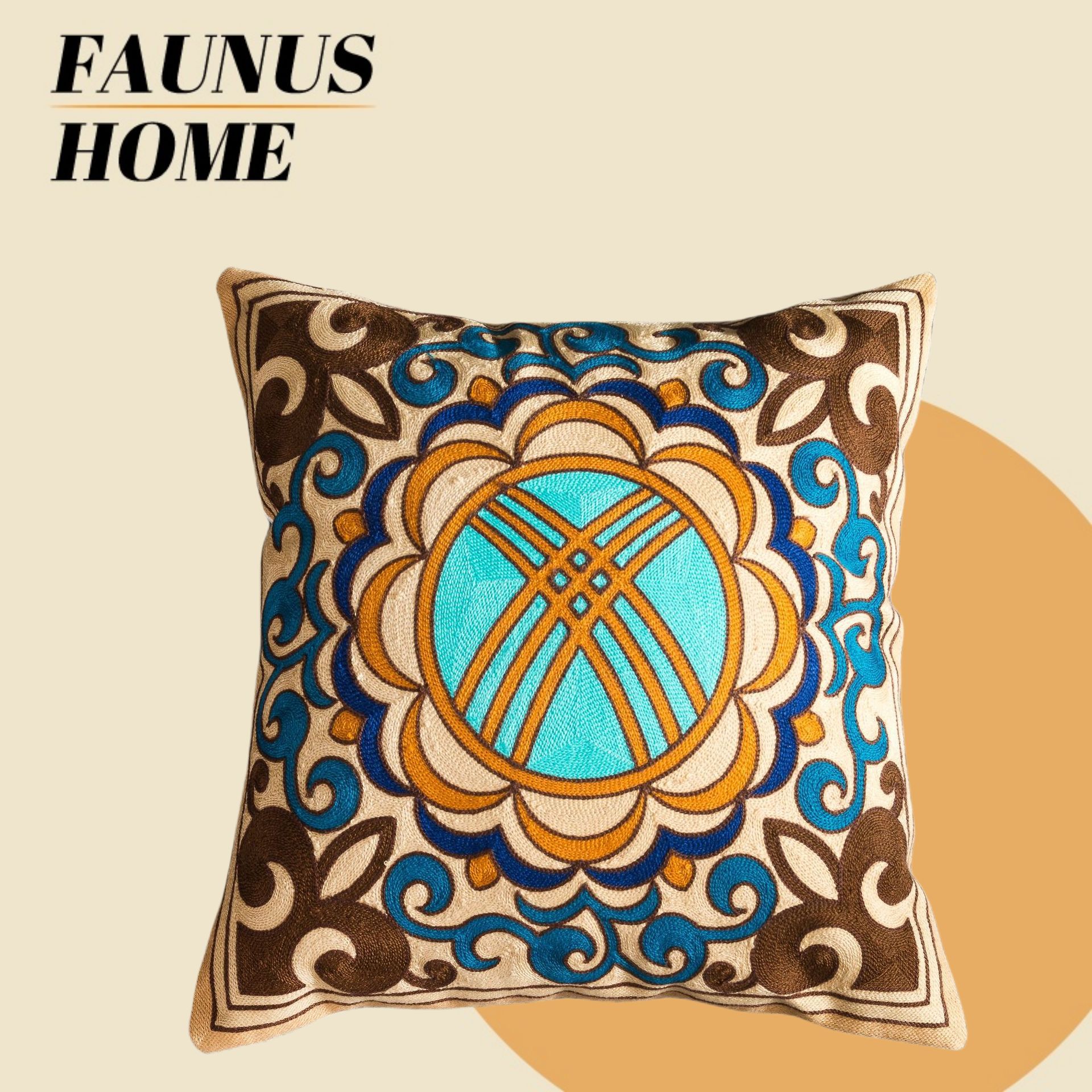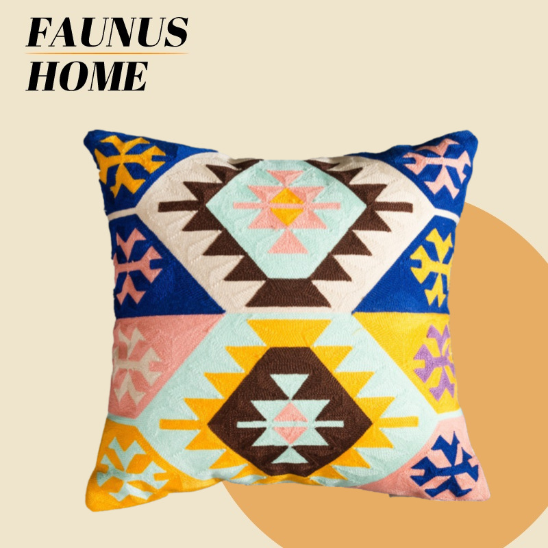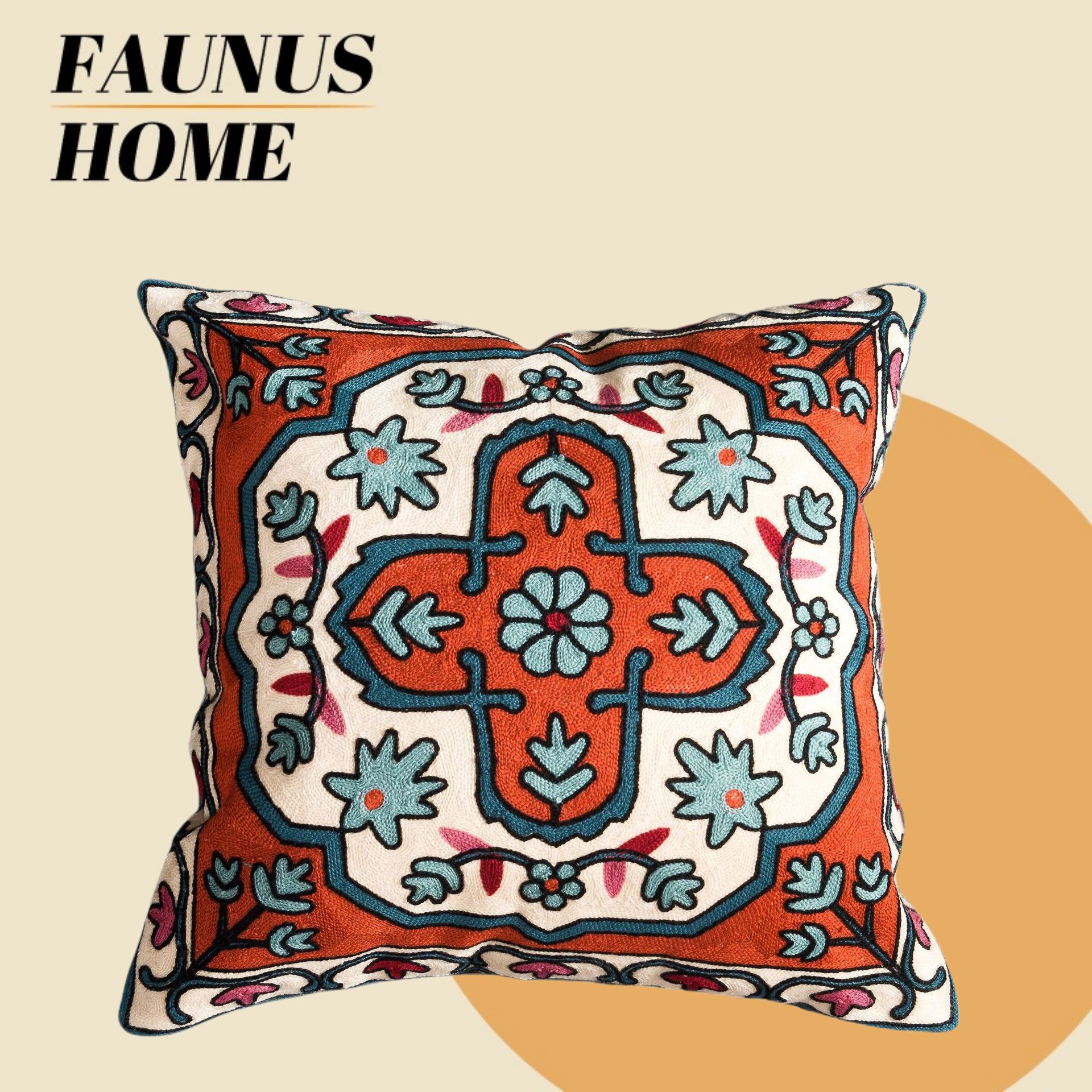 来图定制波西米亚风土耳其粗棉麻满绣哈萨克民族靠垫套刺绣抱枕