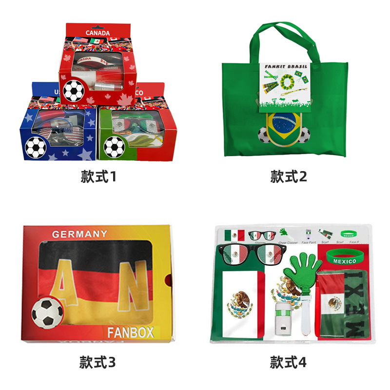 美加墨2026世界杯产品礼盒套装色丁足球围巾国旗球迷假发眼镜套盒