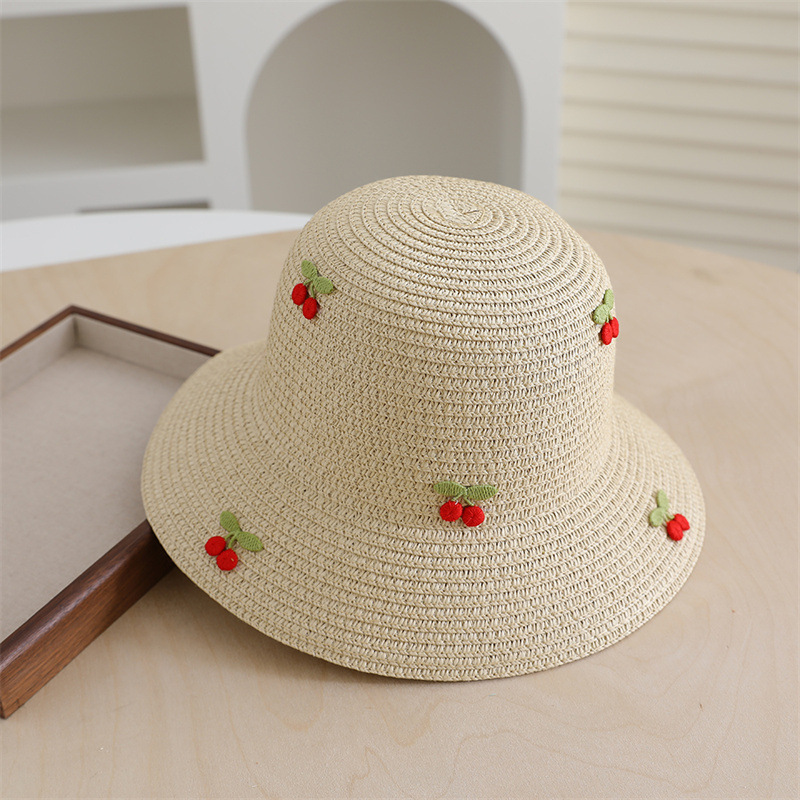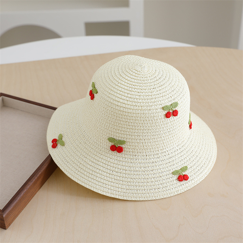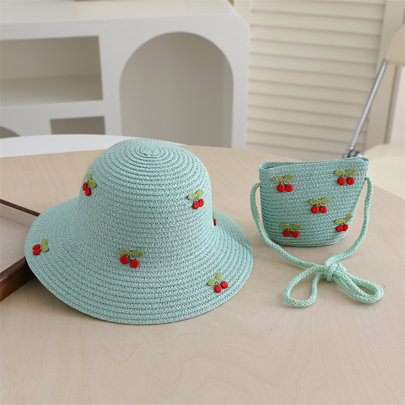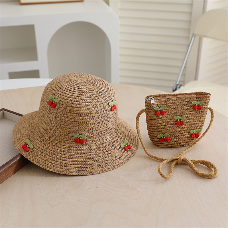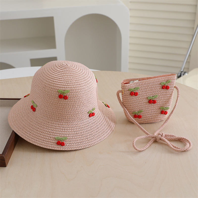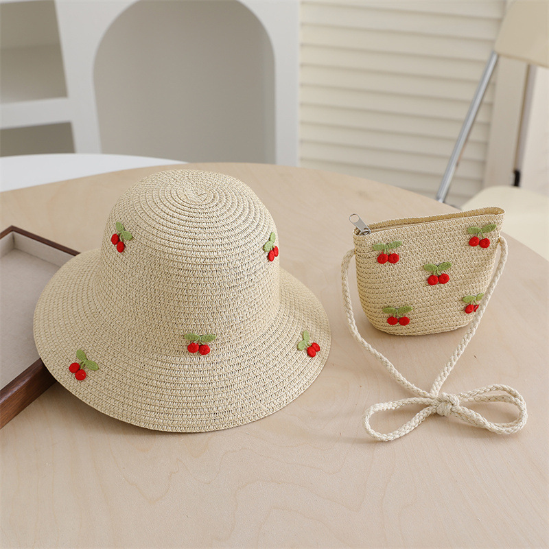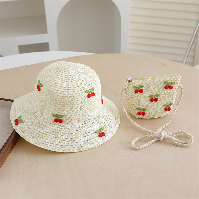 亲子款可爱樱桃宝宝草帽夏季女孩小清新礼帽遮阳帽子包包两件套