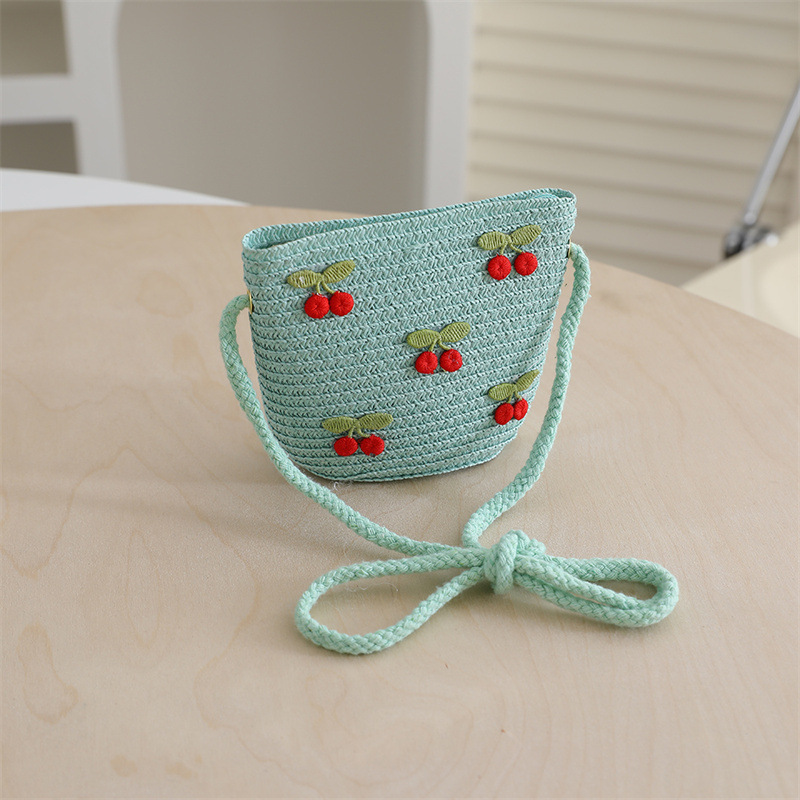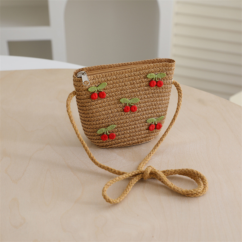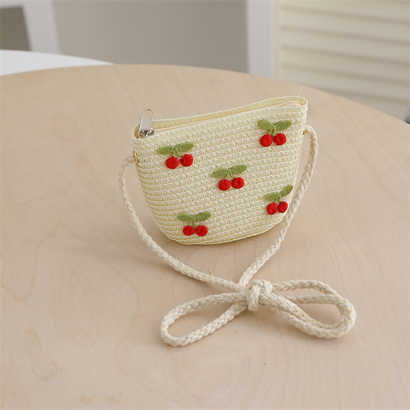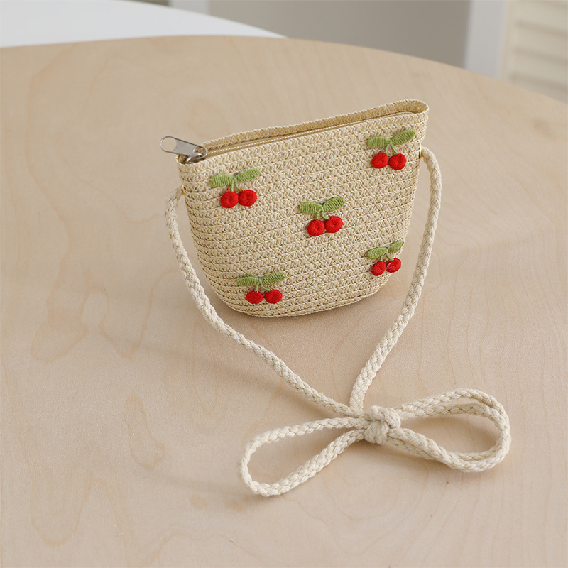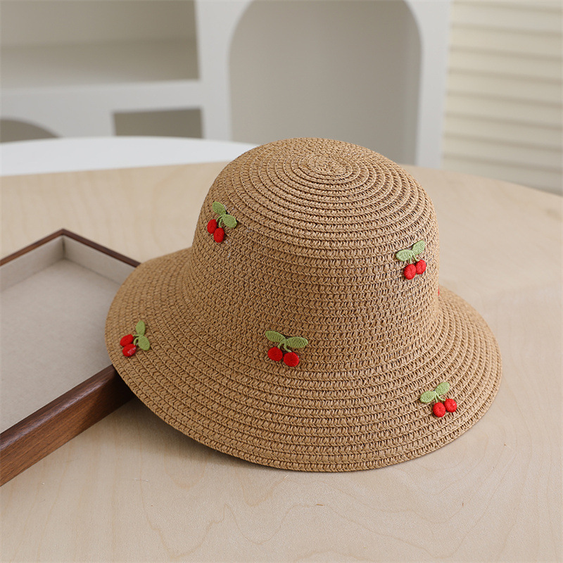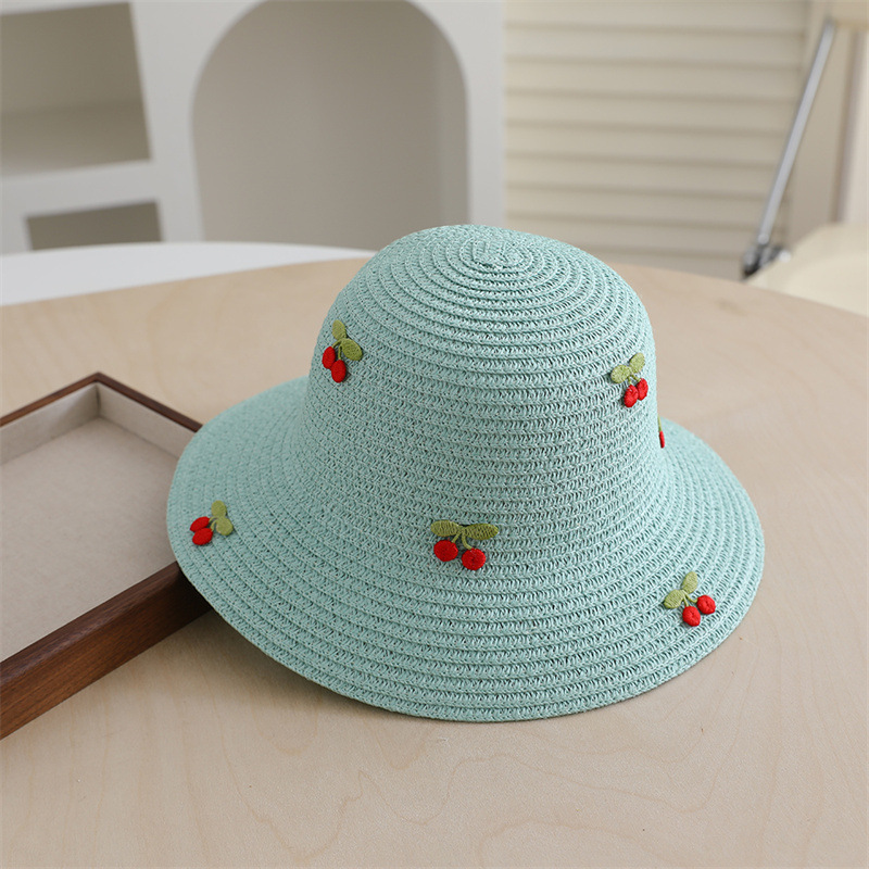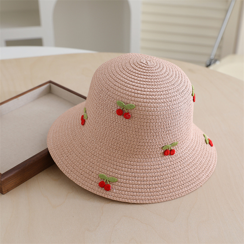 亲子款可爱樱桃宝宝草帽夏季女孩小清新礼帽遮阳帽子包包两件套