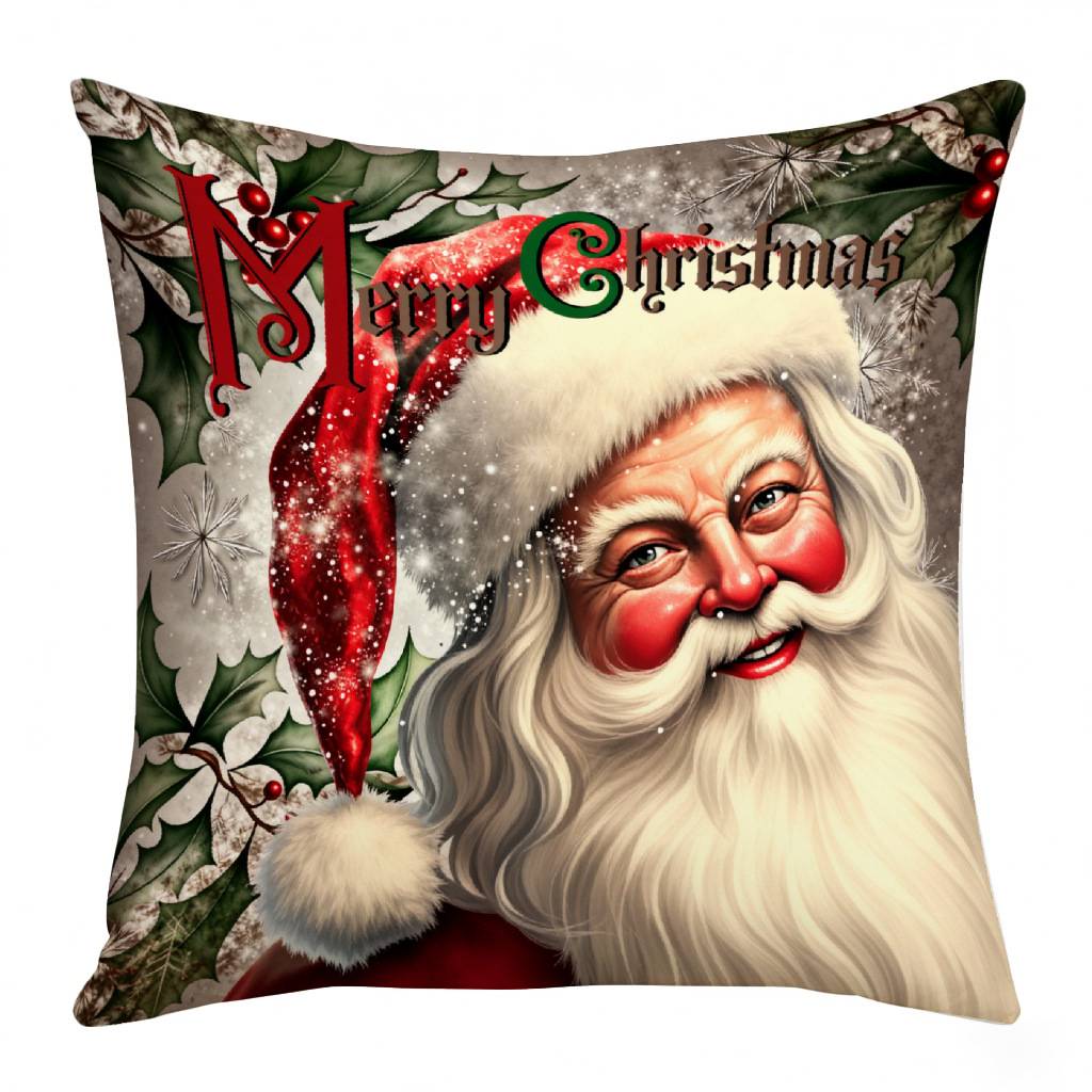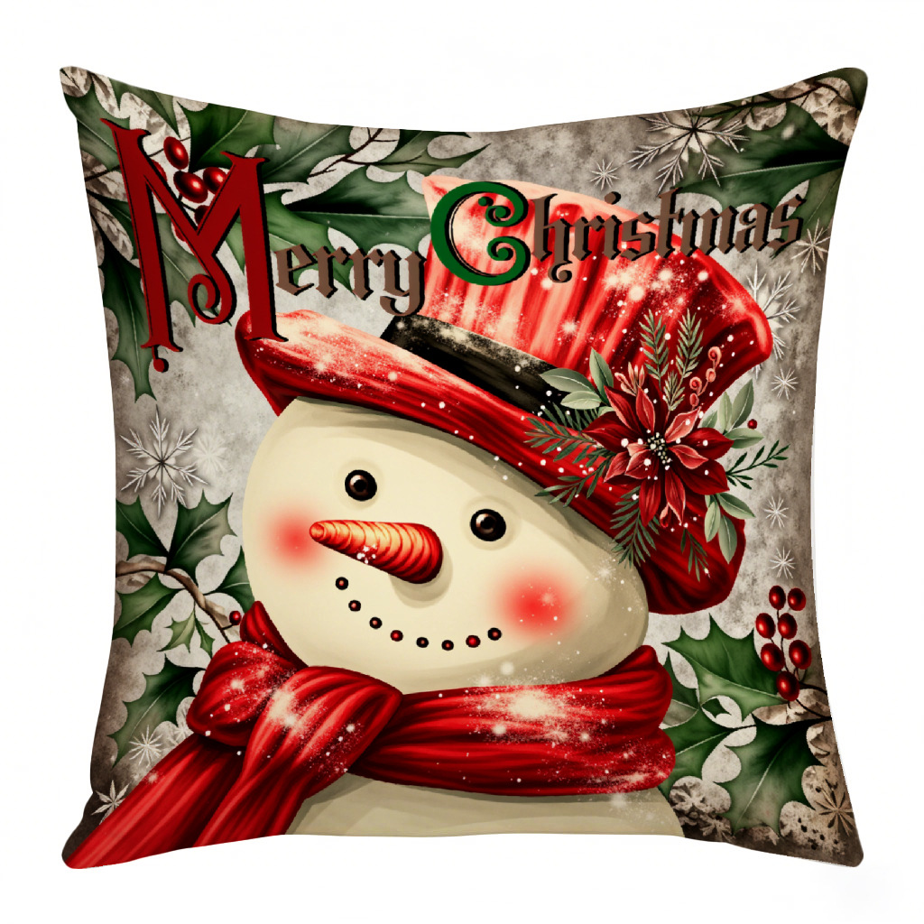 圣诞主题数码印花抱枕套圣诞老人雪人节日礼品装饰靠垫靠枕套跨境