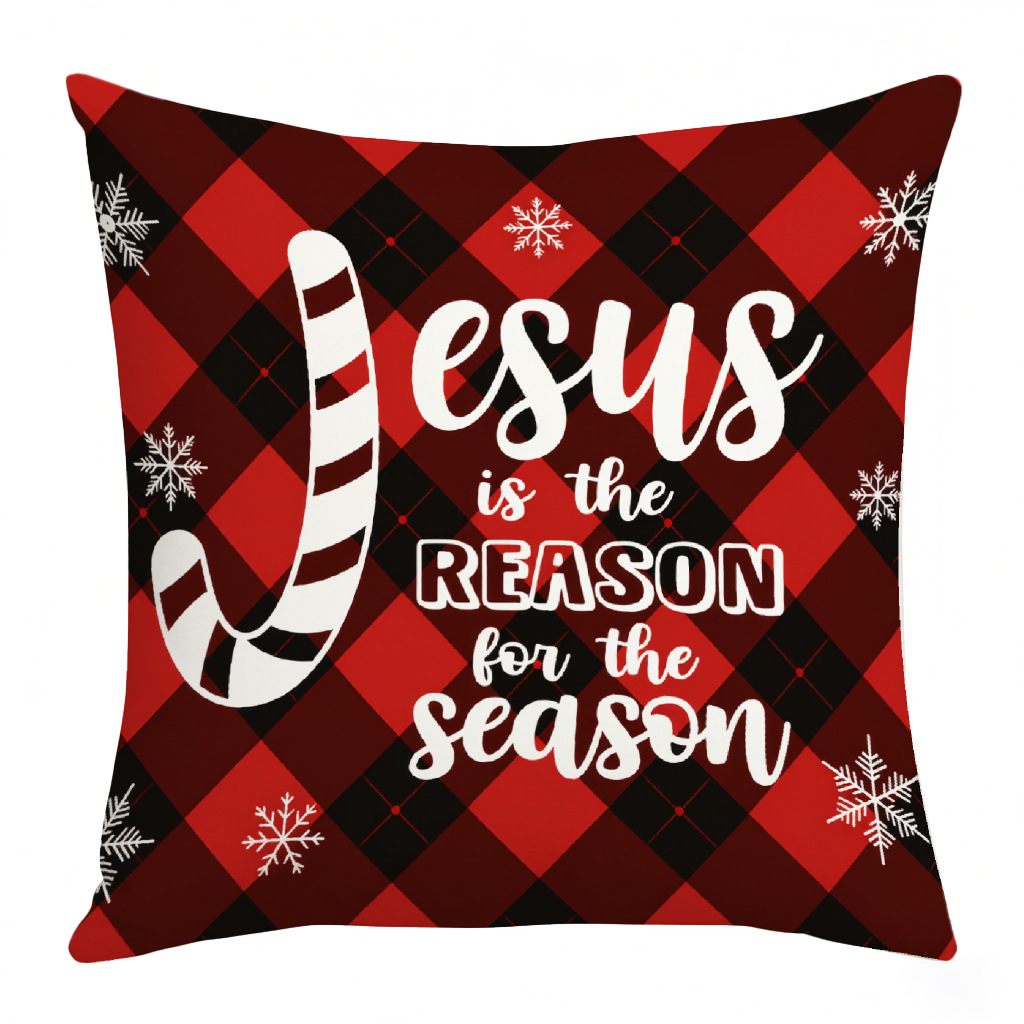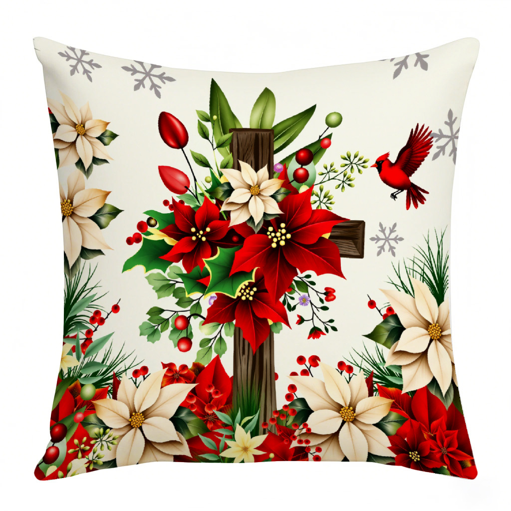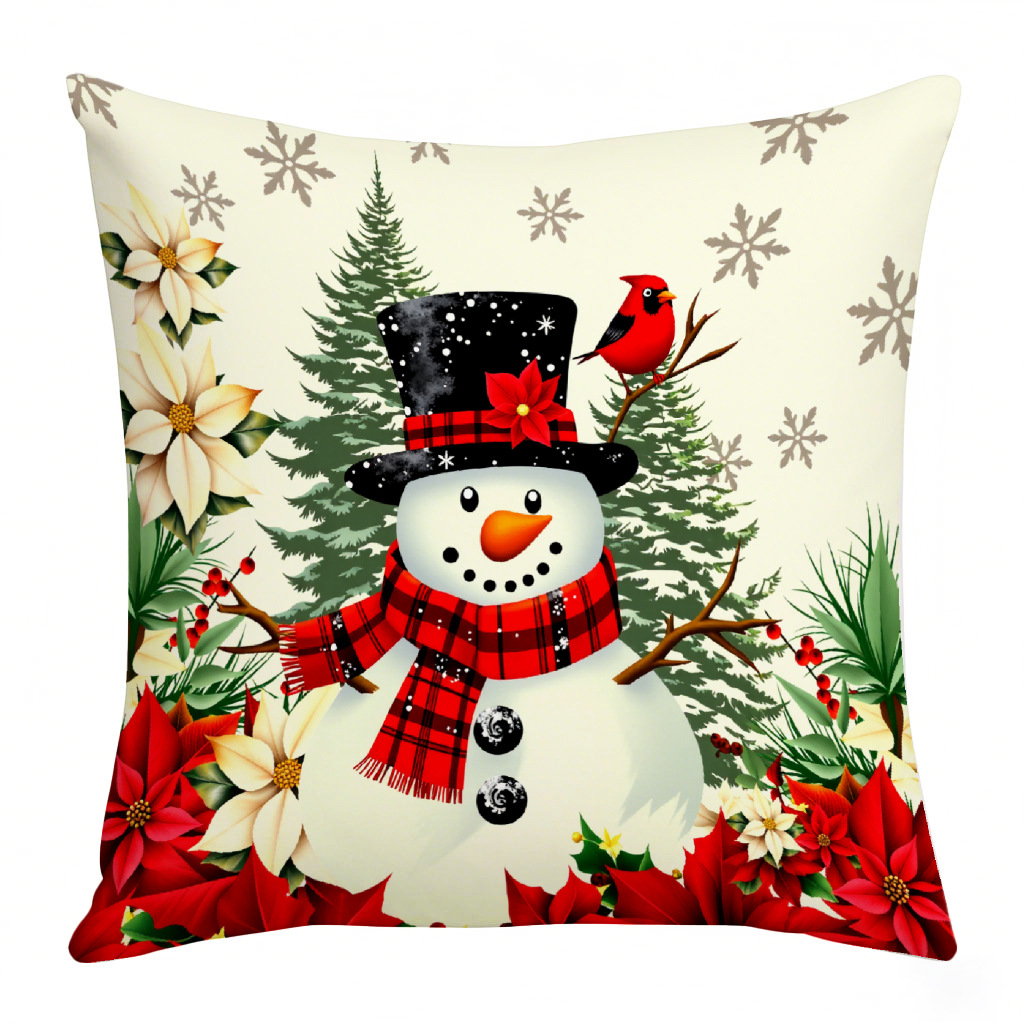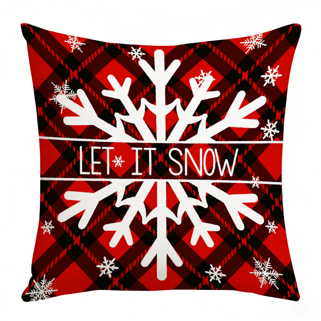 新款圣诞节红白系靠枕套雪花雪人花卉节日氛围装饰靠垫抱枕套批发