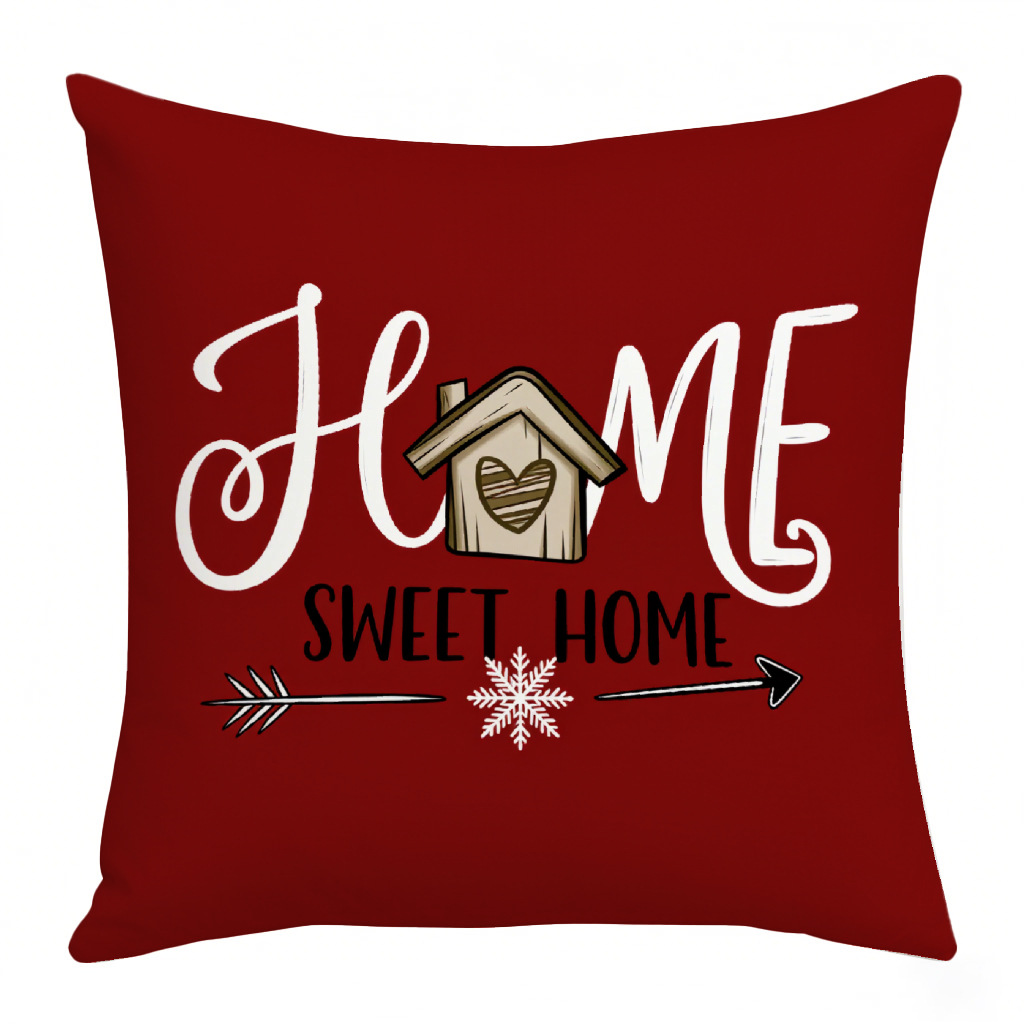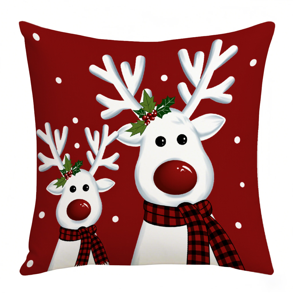 红色圣诞风数码印花靠垫套雪人麋鹿可爱沙发客厅软装靠枕抱枕套