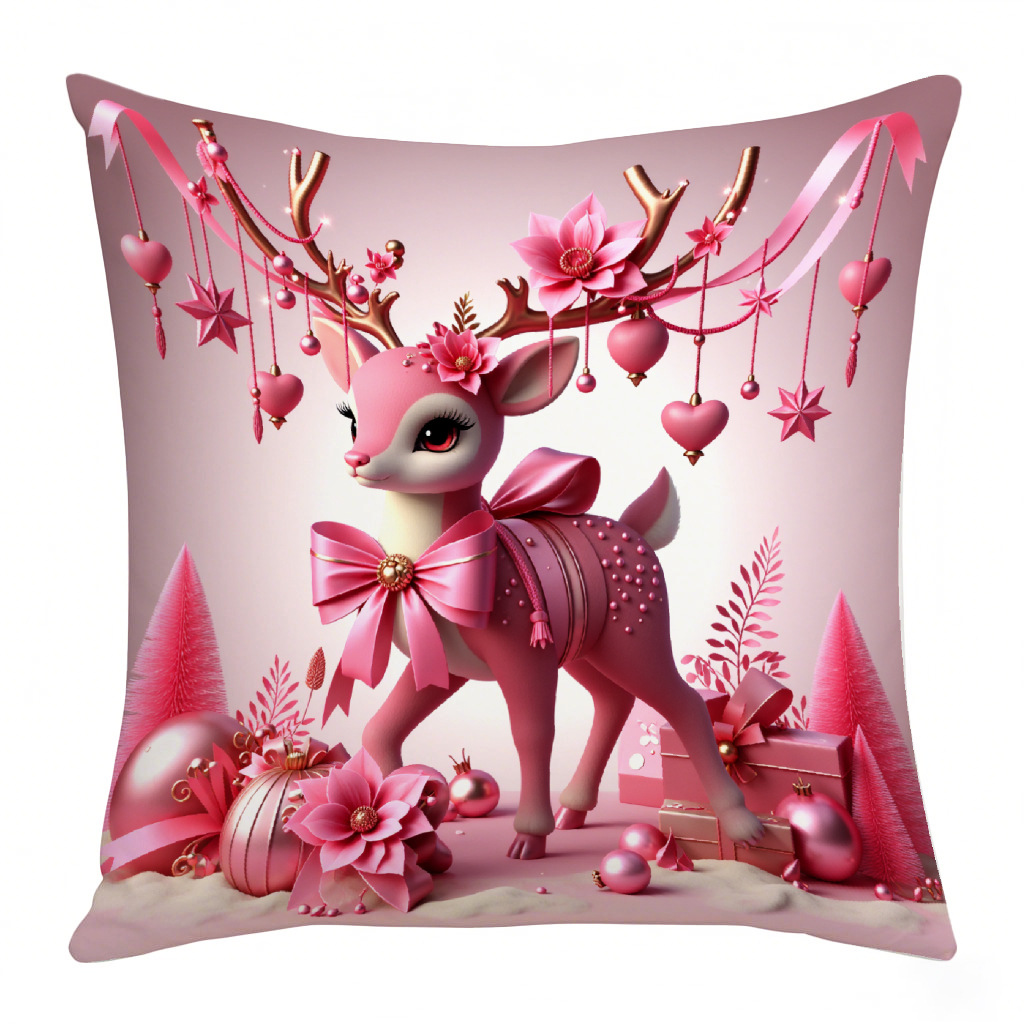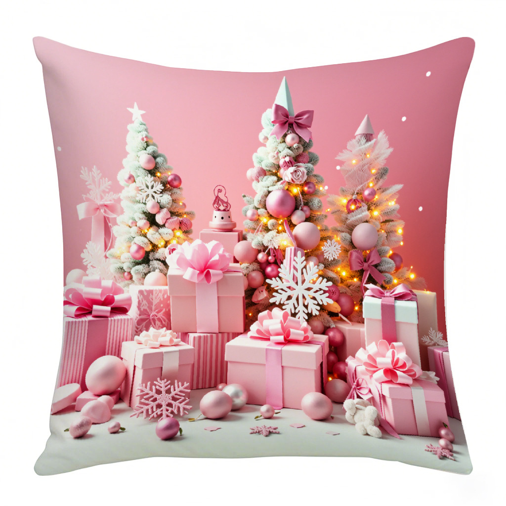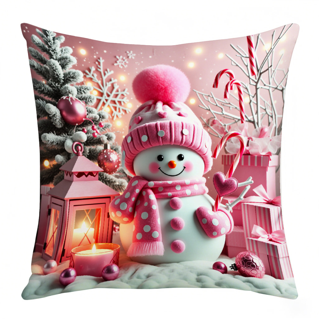 新款圣诞主题粉色雪人印花抱枕套家居软装节日礼品靠垫靠枕套跨境