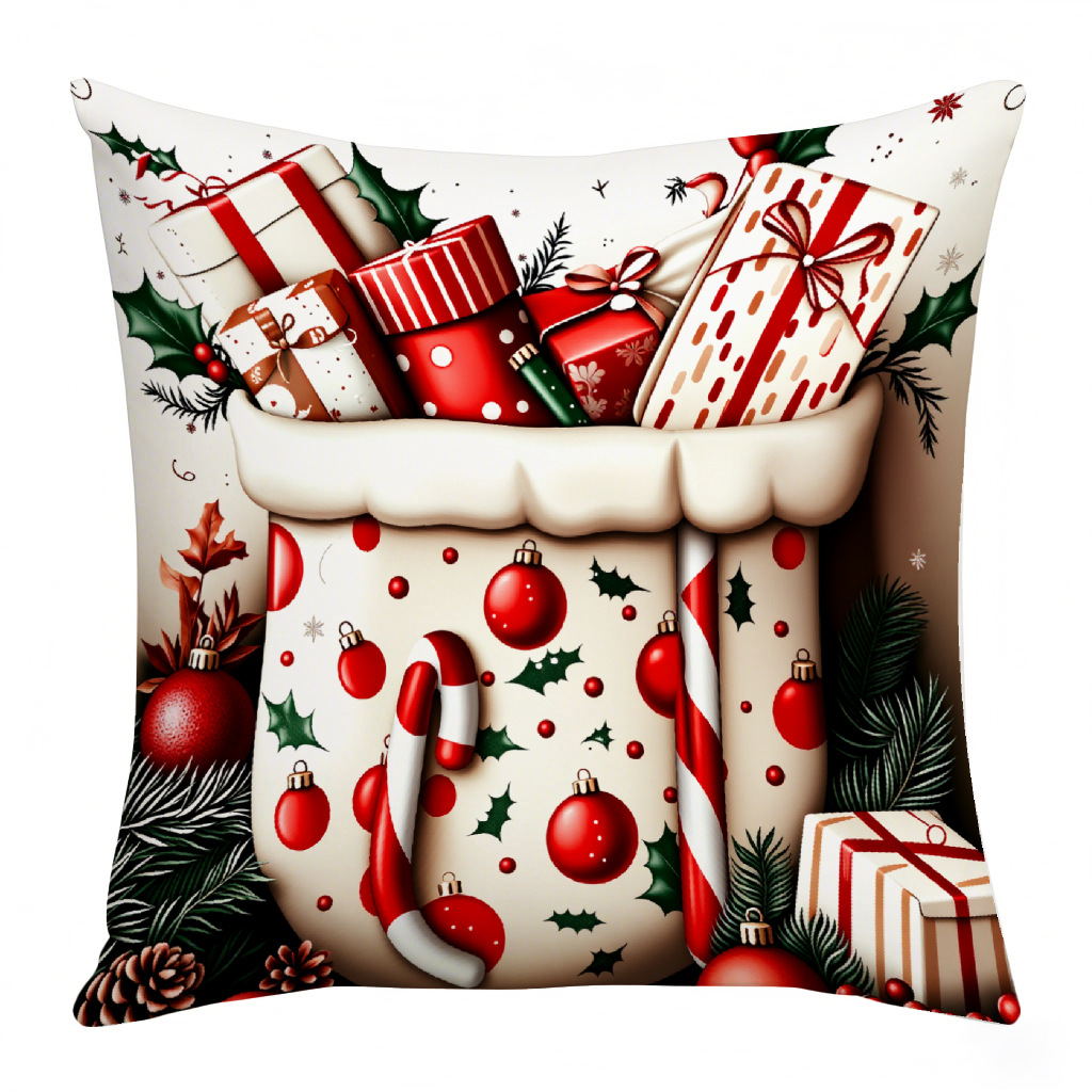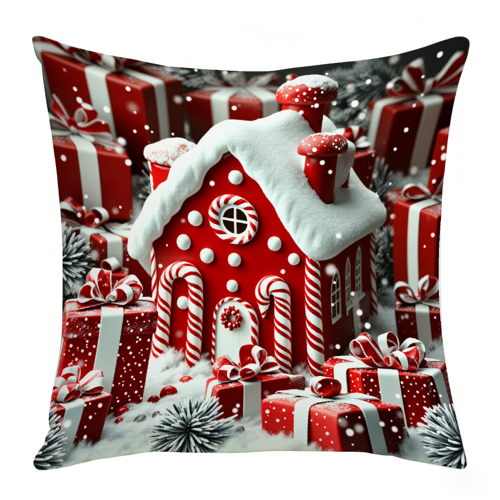 跨境圣诞风印花抱枕套家居装饰靠垫套节日氛围沙发床头靠枕套批发