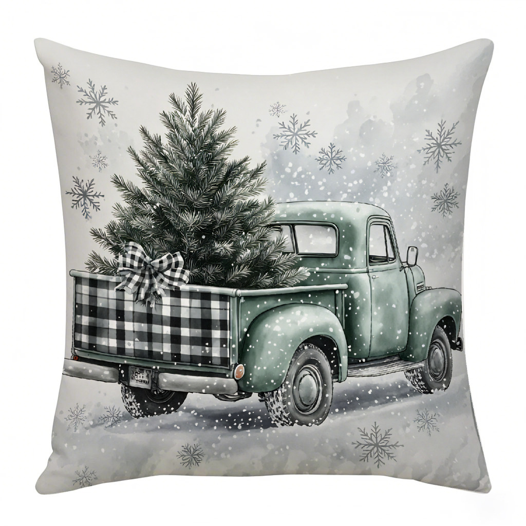 亚马逊北欧风圣诞系列数码印花抱枕套松树字母沙发客厅装饰靠枕套