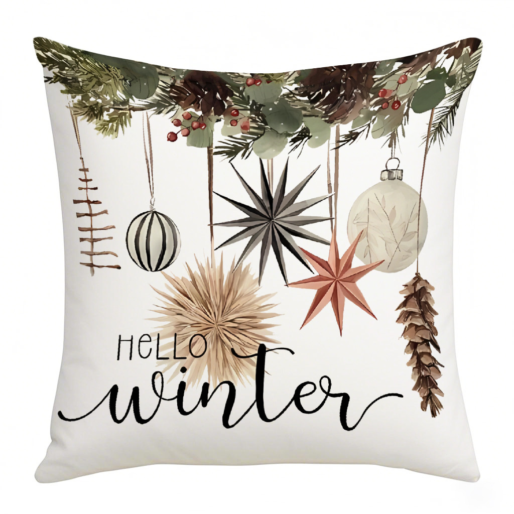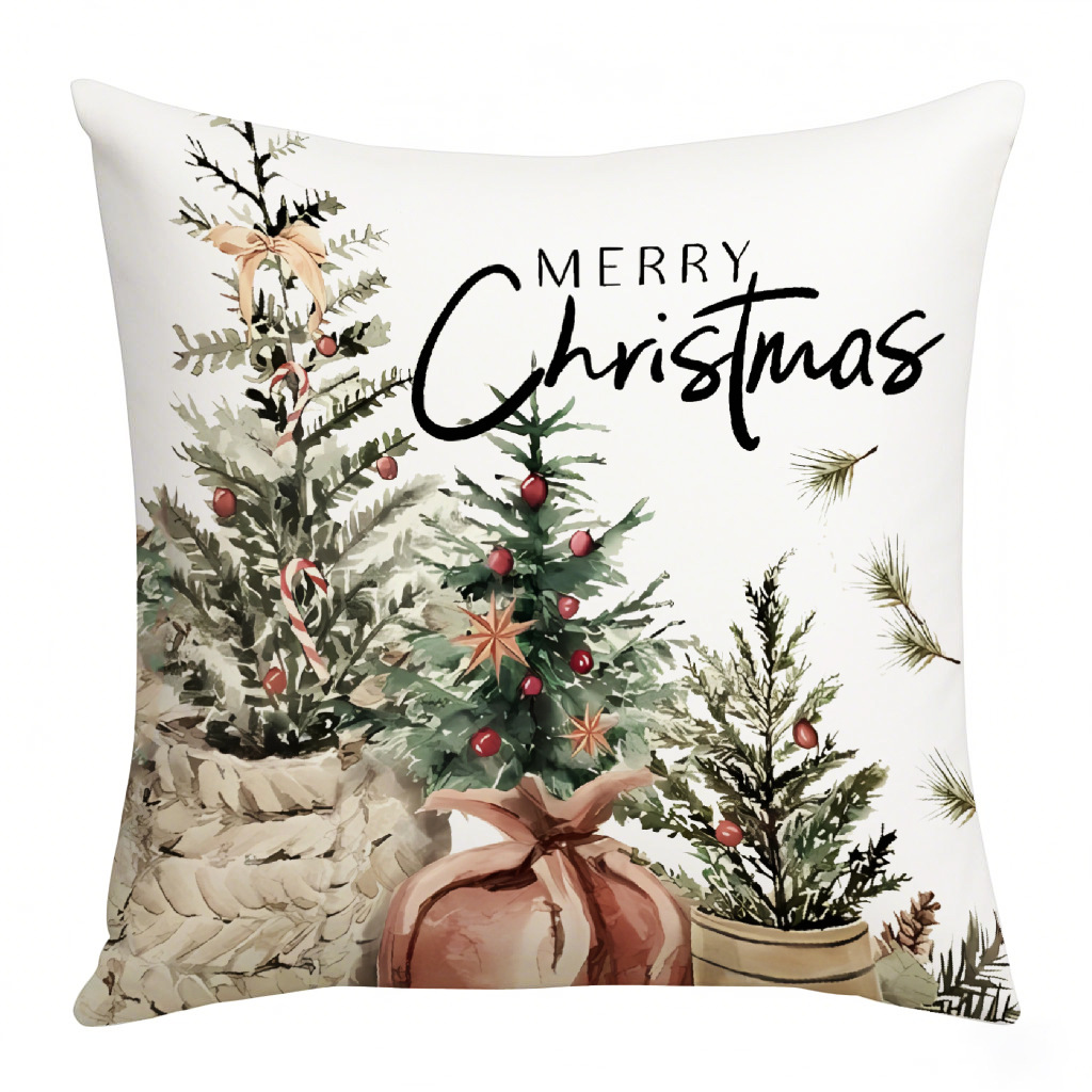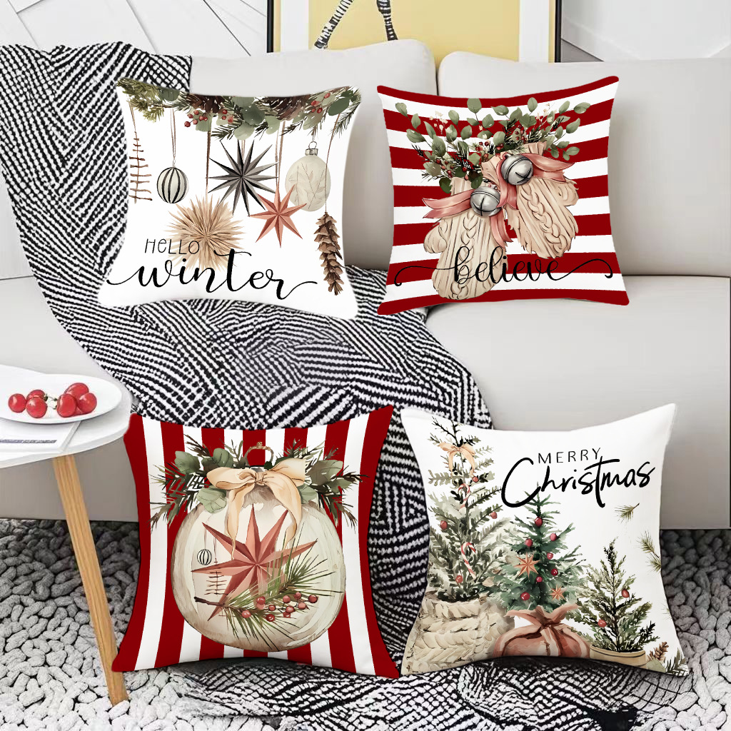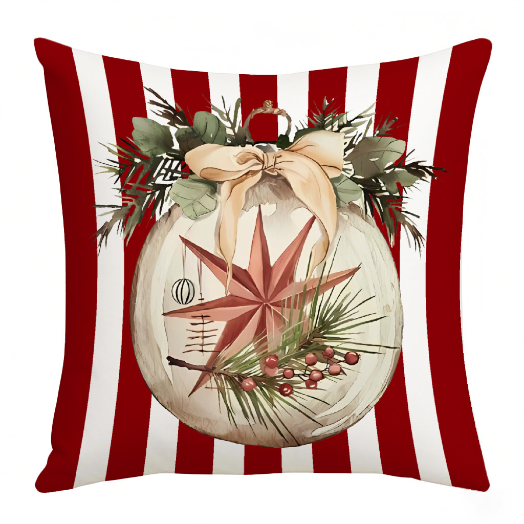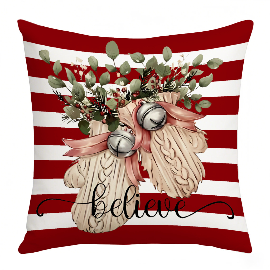 亚马逊热销复古圣诞系列抱枕套花卉条纹铃铛家居装饰腰垫靠枕套