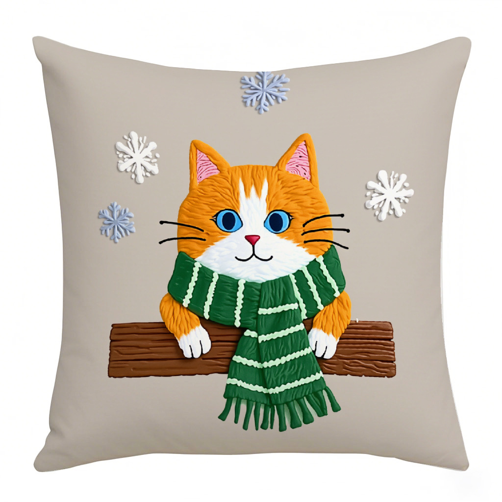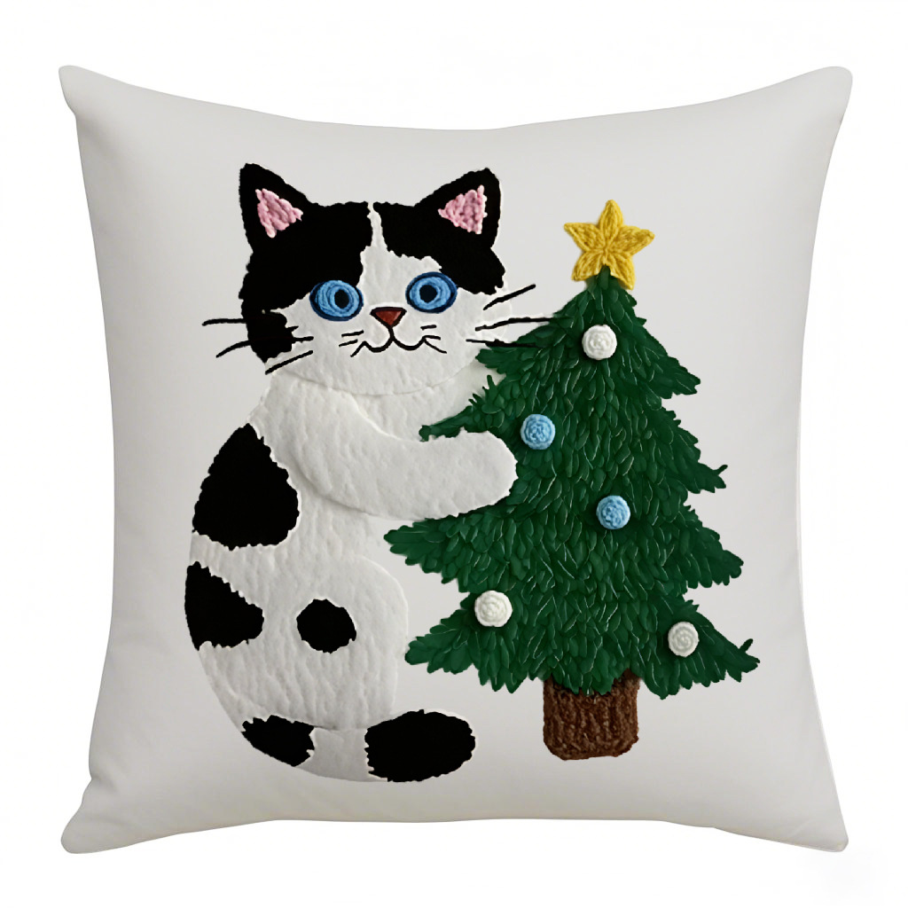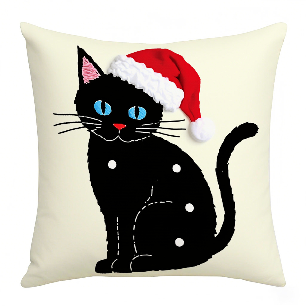 圣诞主题卡通猫咪可爱抱枕套氛围装饰印花亚麻沙发卧室腰垫靠枕套