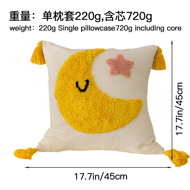 新款儿童卡通抱枕床头靠垫簇绒绣抱枕ins高级感沙发靠背床上靠枕