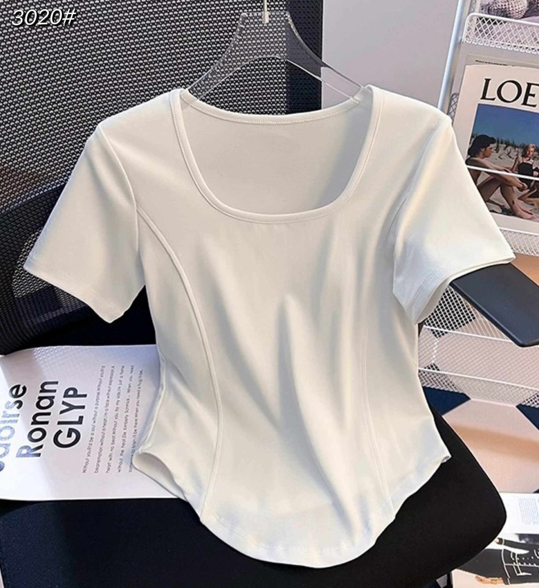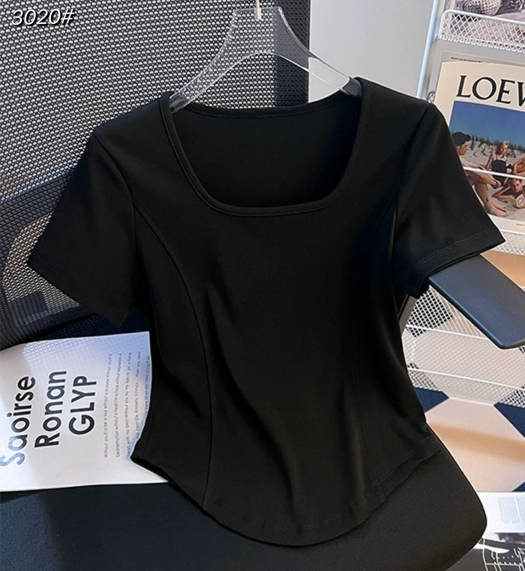 大U领鱼骨短袖t恤女外穿露锁骨蚂蚁腰修身显瘦打底衫女春上衣内搭
