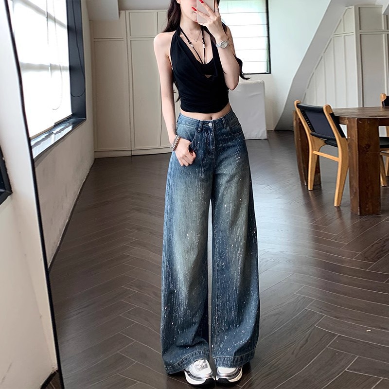 多多大王满天星爆闪烫钻阔腿韩女牛仔拖地裤现货爆款牛仔潮流款式 投诉