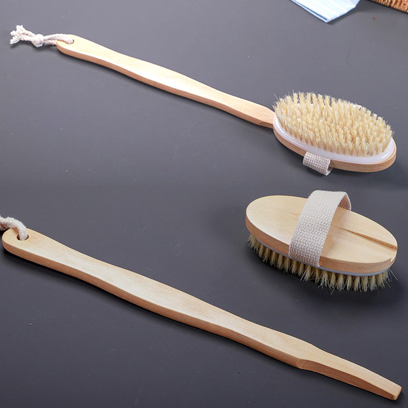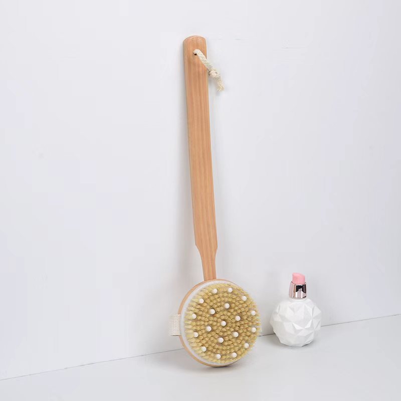 跨境热销木制长柄浴刷可拆卸弯曲搓背洗澡刷猪鬃软毛洗澡刷圆头11
