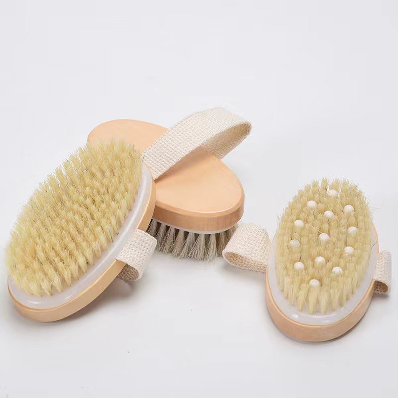 手拿猪鬃毛浴刷12.5cm带按摩钉