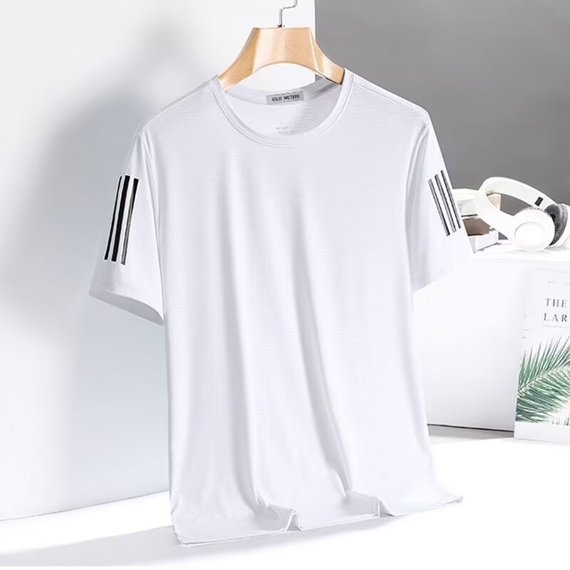 夏季速干衣短袖薄款透气半袖冰丝t恤男圆领上衣男运动时尚宽松