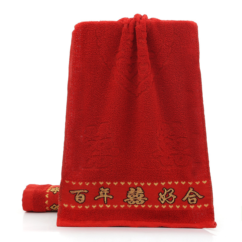 结婚毛巾双喜字纯棉面巾洗脸红色新婚复古婚庆喜事陪嫁伴手礼毛巾
