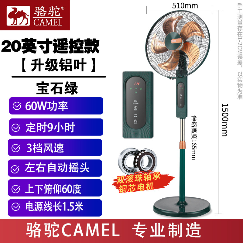 骆驼电风扇落地扇家用宿舍遥控台式扇学生摇头静音立式落地电扇