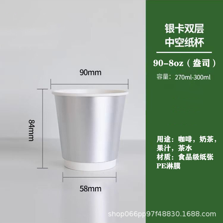 银色拉丝银卡咖啡奶茶热饮防漏加厚外卖家用双层中空纸杯批发