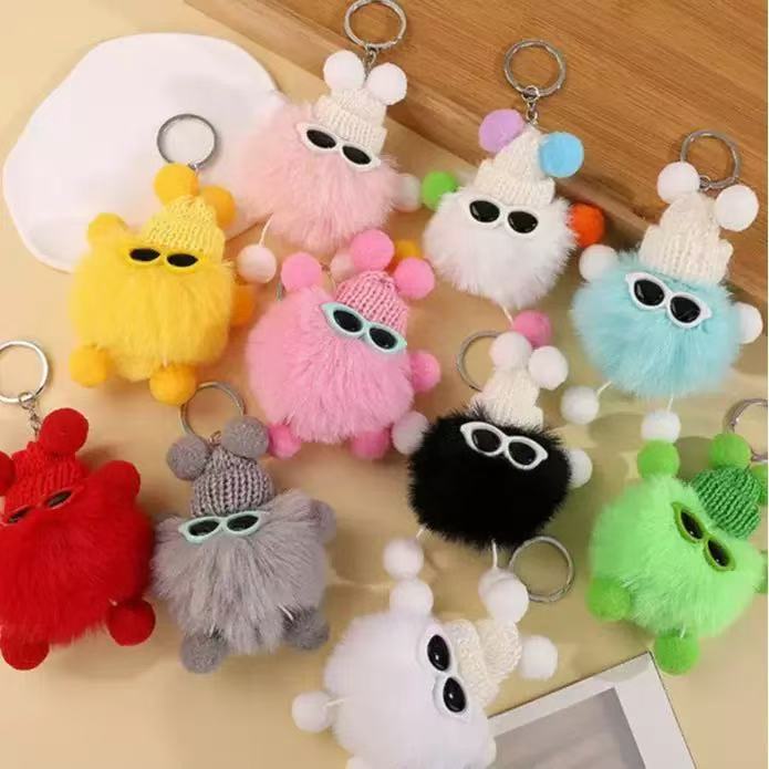 爆款毛绒煤球钥匙扣书包挂件幼儿园小学生创意小礼品礼物