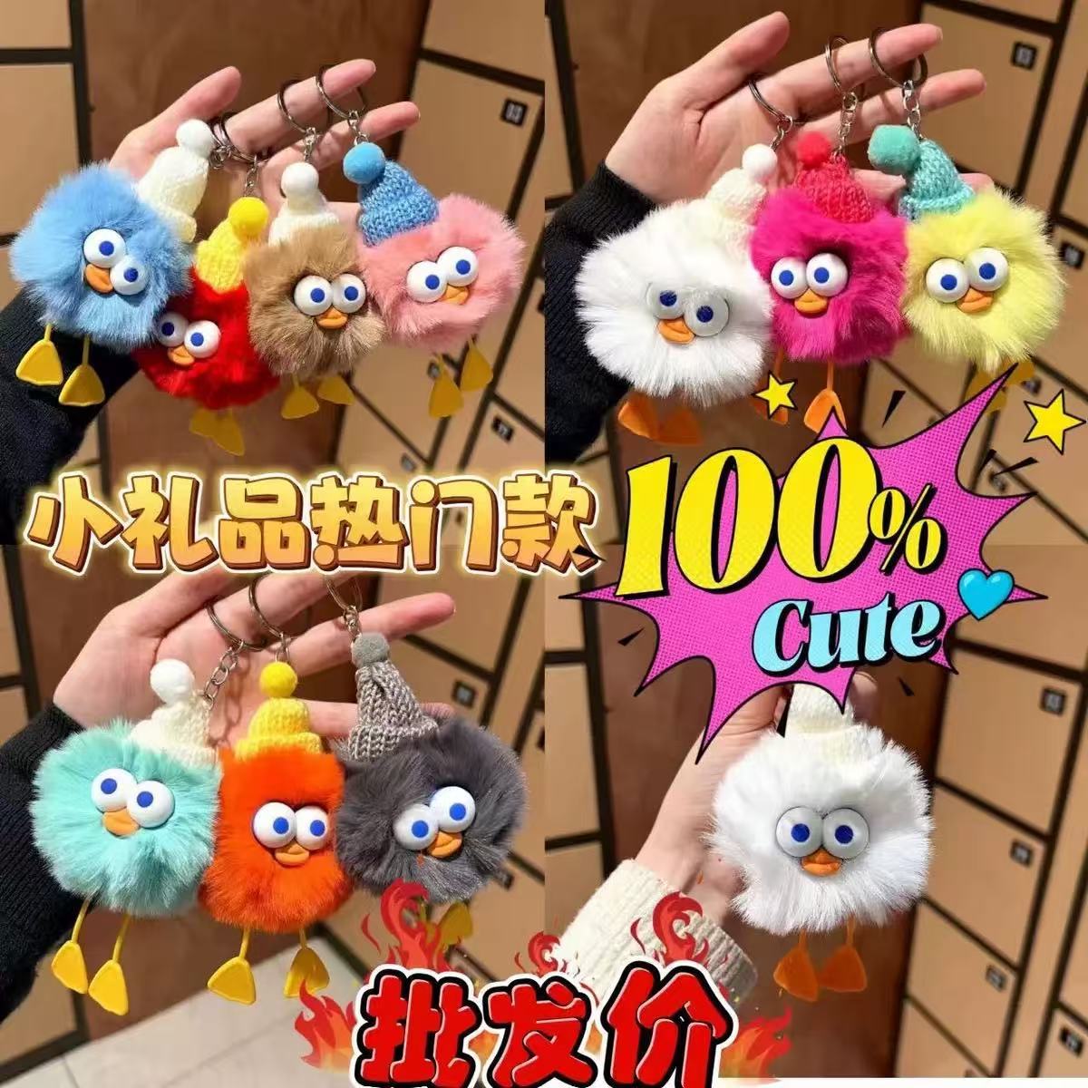 毛绒可爱鸭颜色多色混发【平圈扣四节链条款式】
