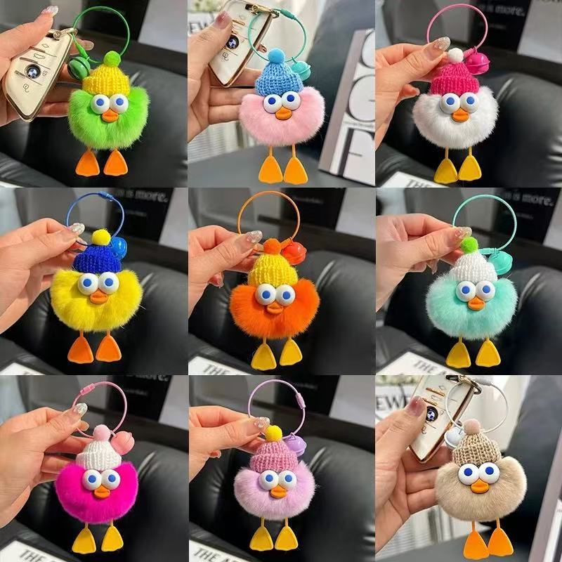 毛绒可爱鸭颜色多色混发【钢丝圈款式+铃铛】