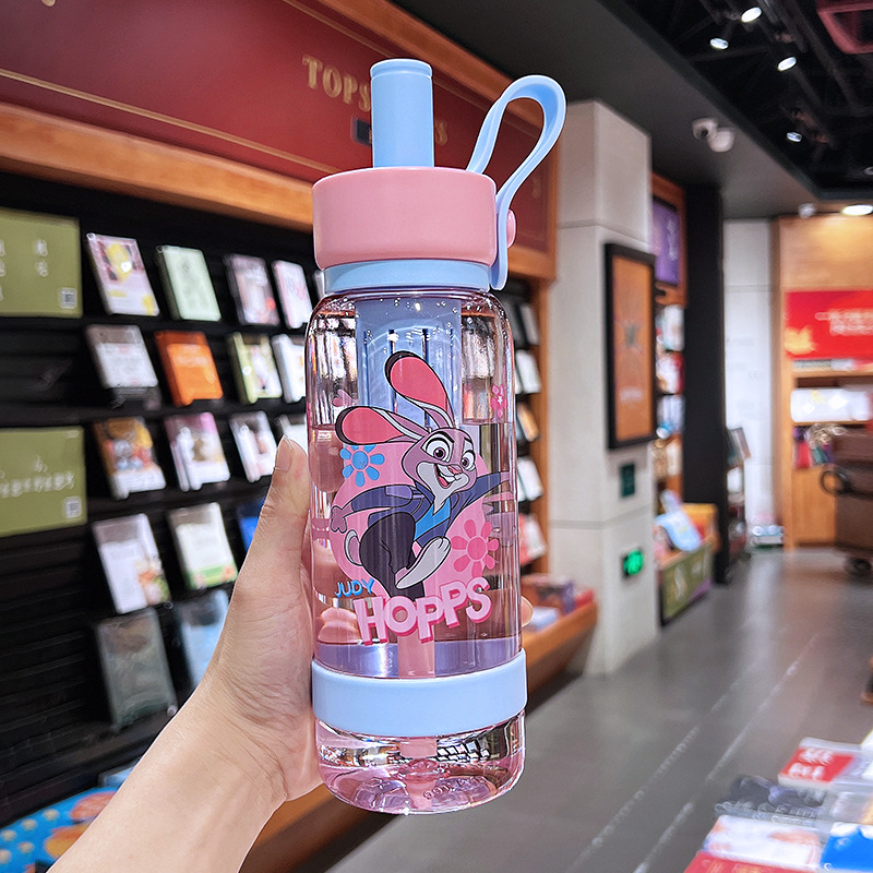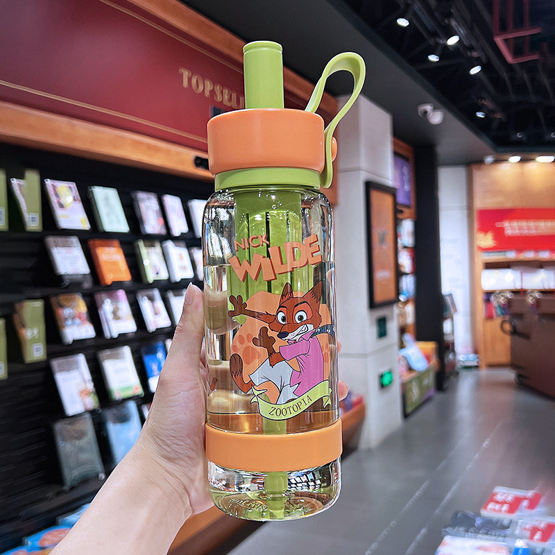 疯狂动物城果茶吸管杯女生高颜值夏季塑料杯儿童上学便携卡通水杯