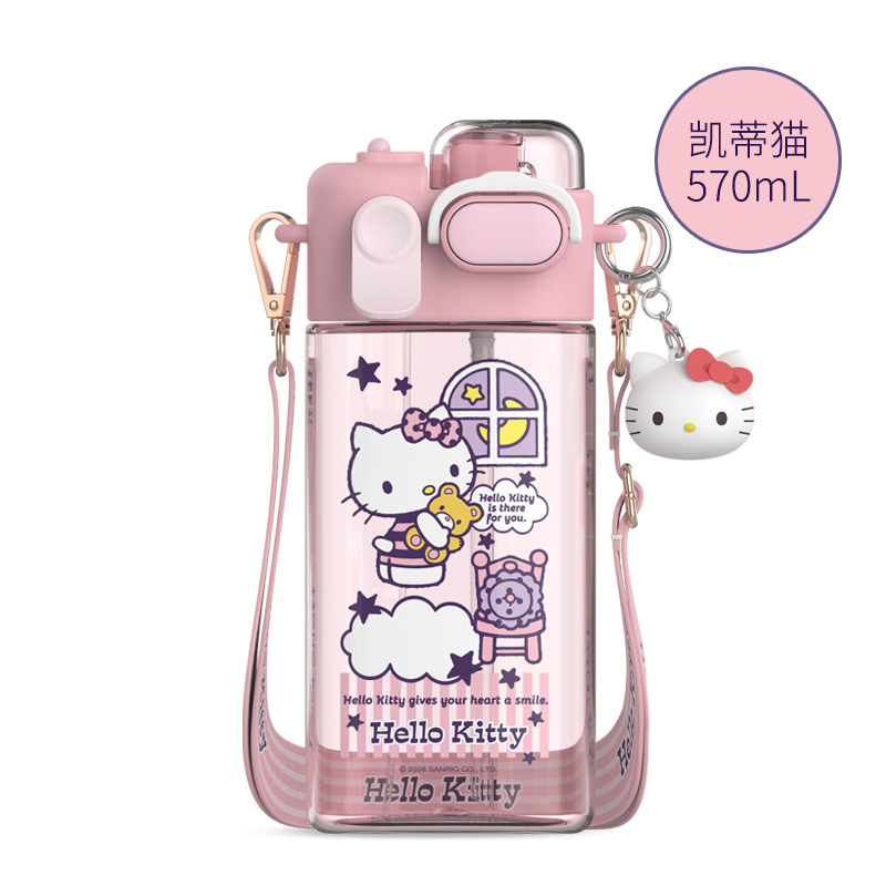 三丽鸥方形喷雾吸管杯女生可爱卡通塑料水杯学生夏清凉防摔太空杯