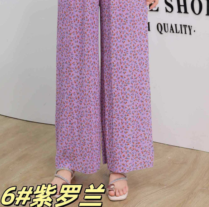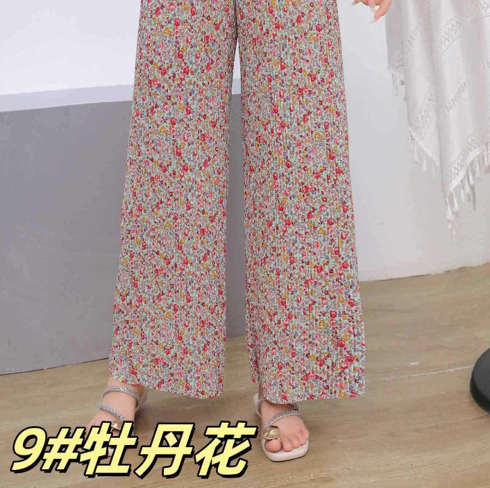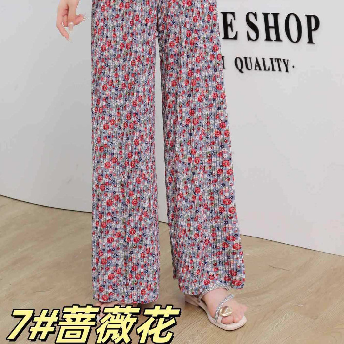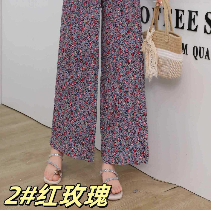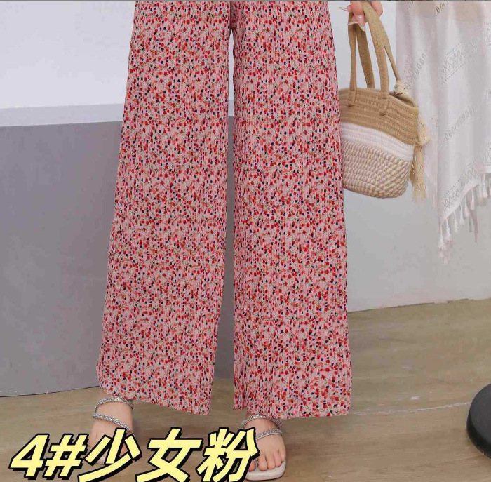 冰丝粉色碎花阔腿休闲防晒沙滩凉凉裤夏季居家遛弯休闲裤显腿长