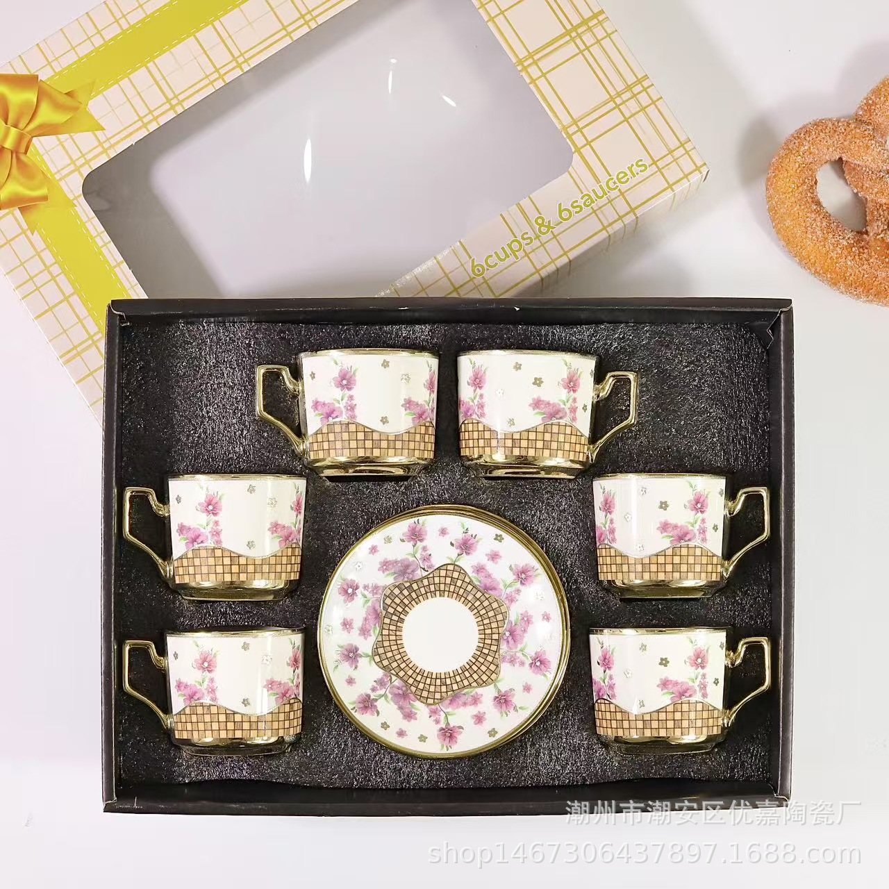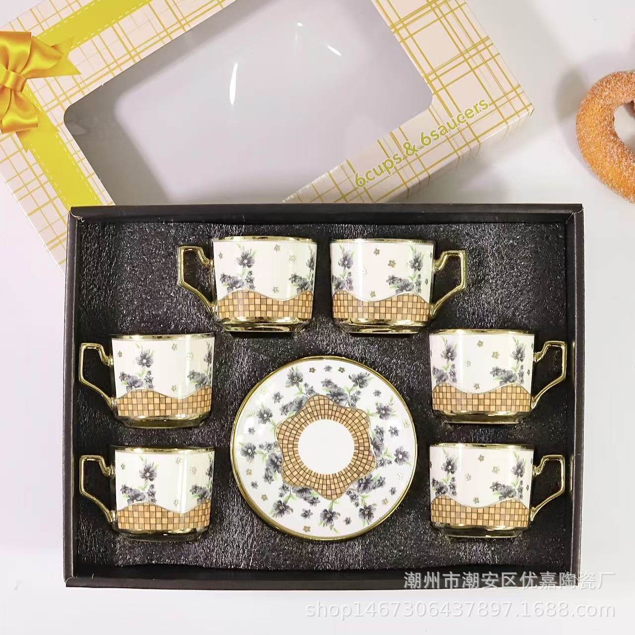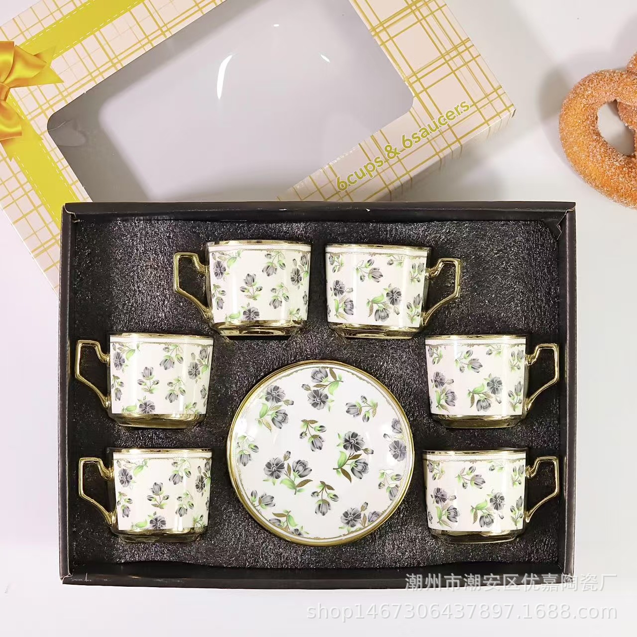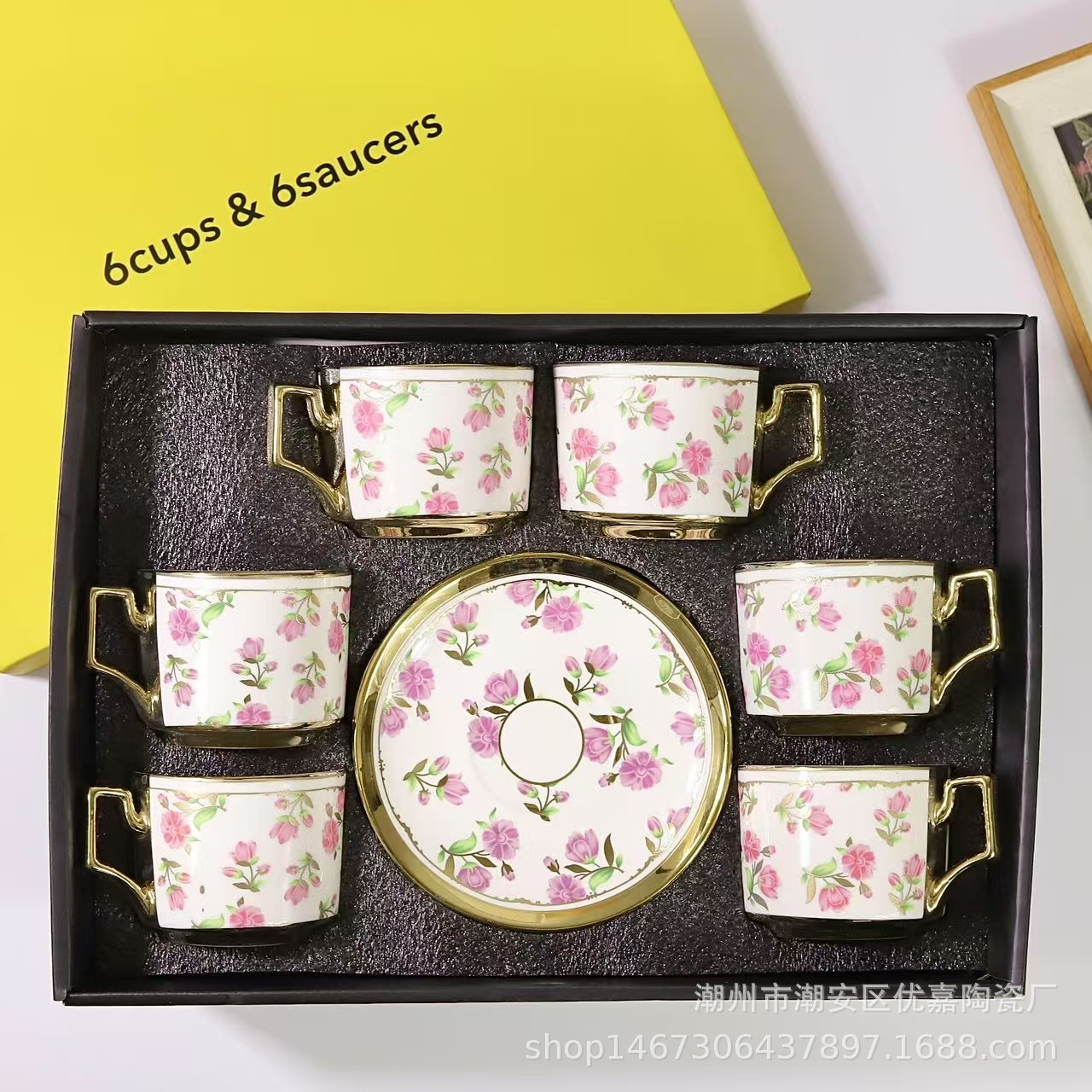 欧式陶瓷咖啡杯小碎花镀金陶瓷杯英式咖啡杯6杯碟12件套礼盒套装