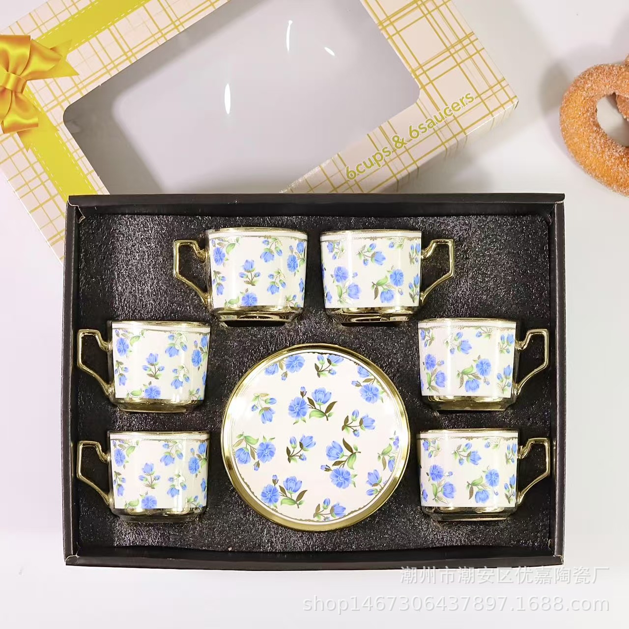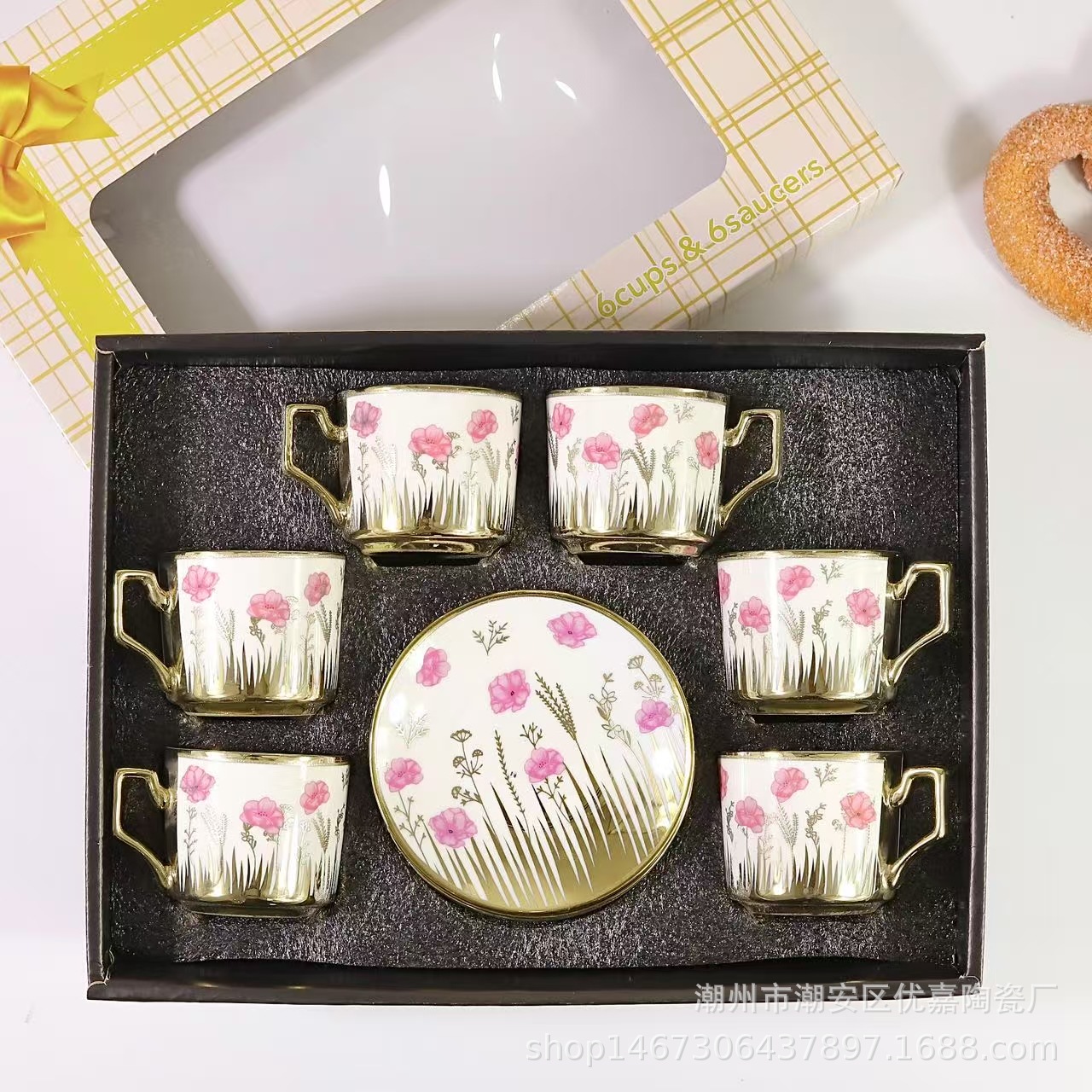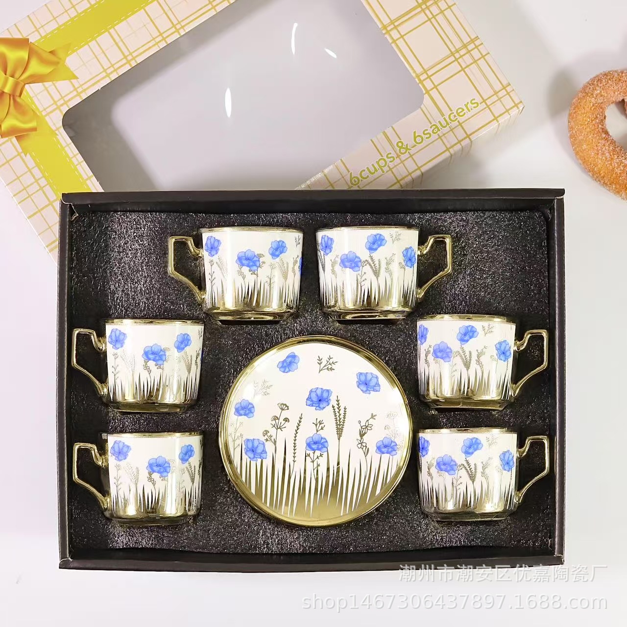 欧式陶瓷咖啡杯小碎花镀金陶瓷杯英式咖啡杯6杯碟12件套礼盒套装