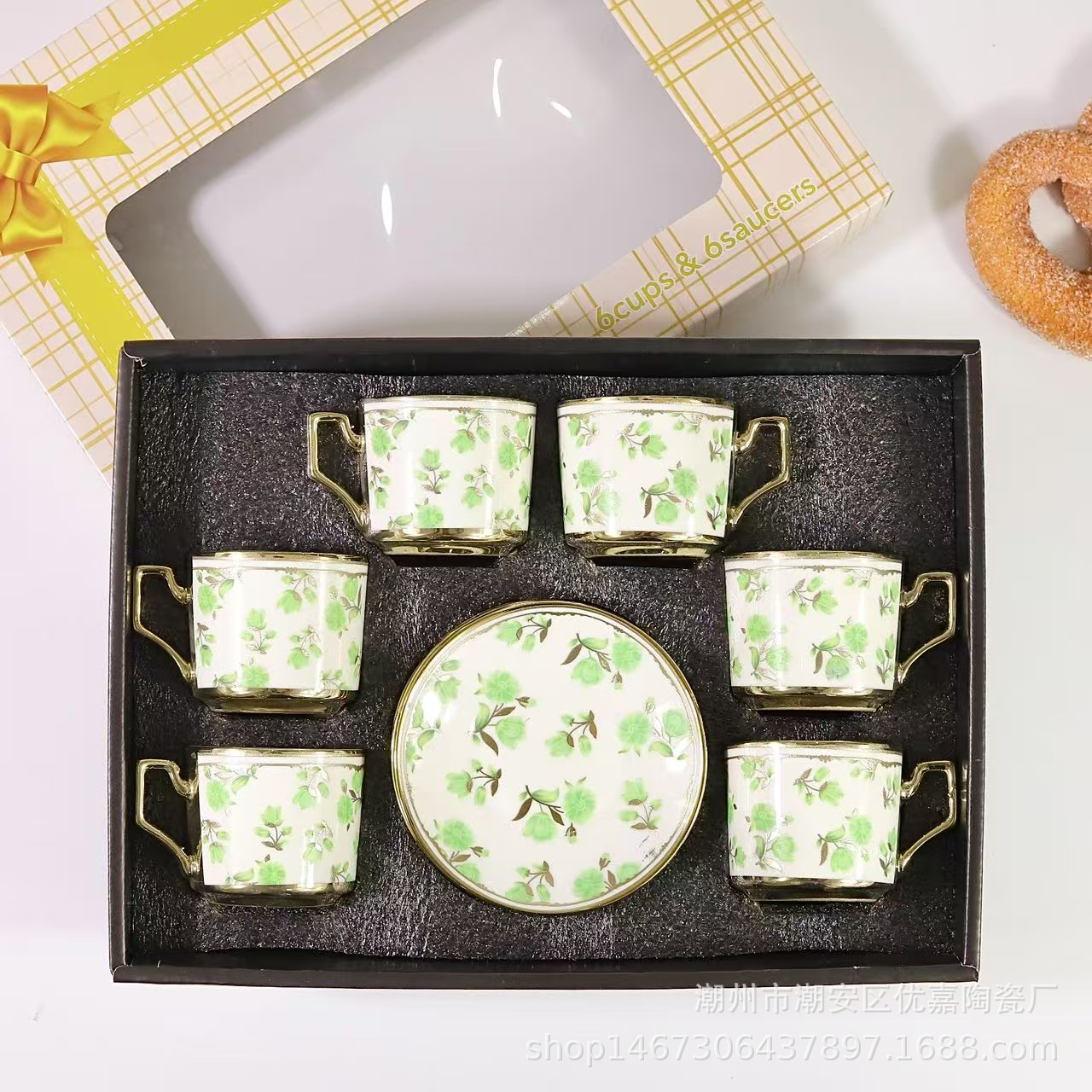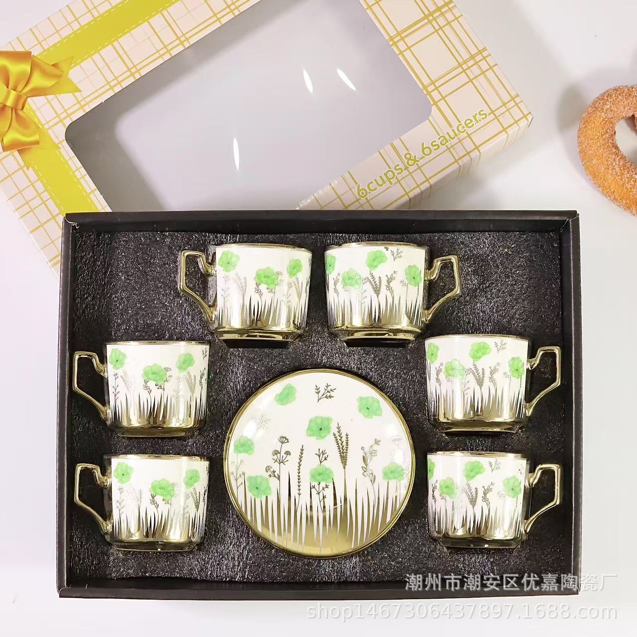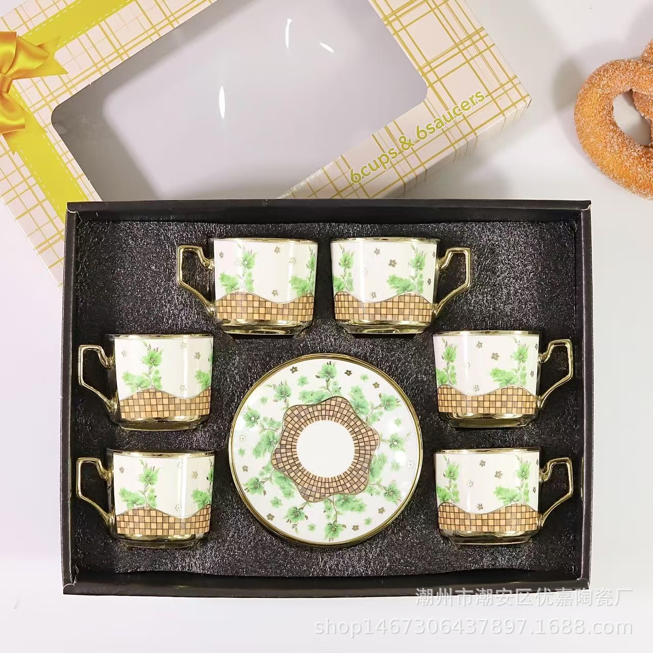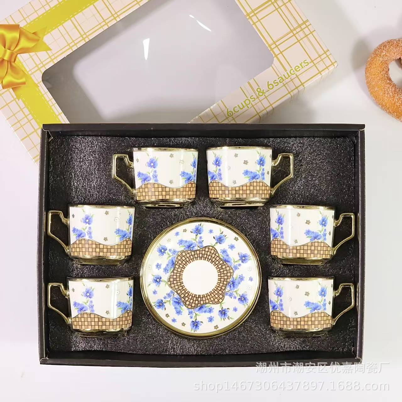 欧式陶瓷咖啡杯小碎花镀金陶瓷杯英式咖啡杯6杯碟12件套礼盒套装