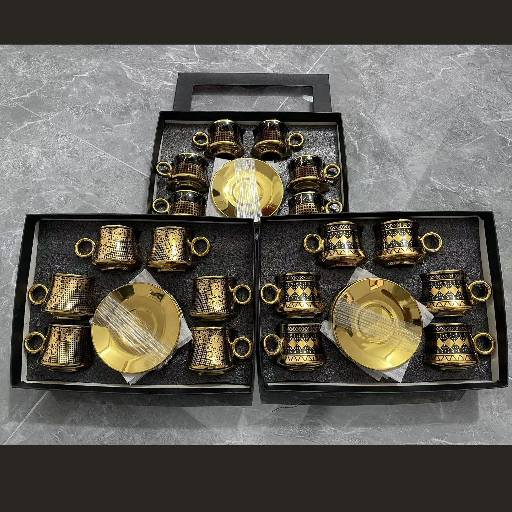 跨境欧式陶瓷咖啡杯 色釉陶瓷杯土耳其咖啡杯碟12件套礼盒套装