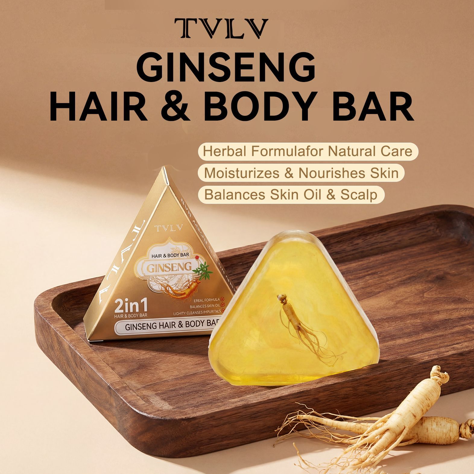 跨境TVLV人参洗发沐浴皂身体清洁手工皂持久留香沐浴人参肥皂滋润