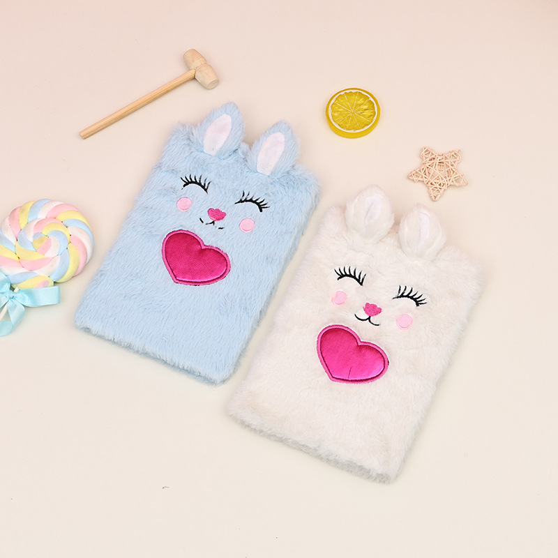 卡通少女笔记本小学生可爱毛绒日记本儿童兔子小动物记事本子批发