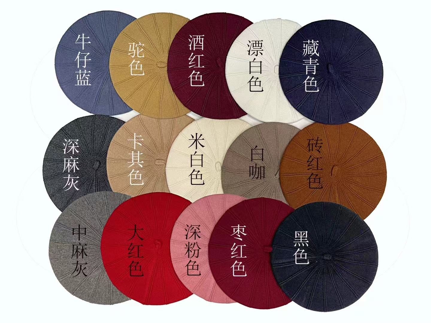 跨境秋冬新款羊绒包芯纱贝雷帽双层针织复古纯色画家帽加厚帽子潮
