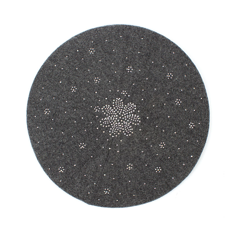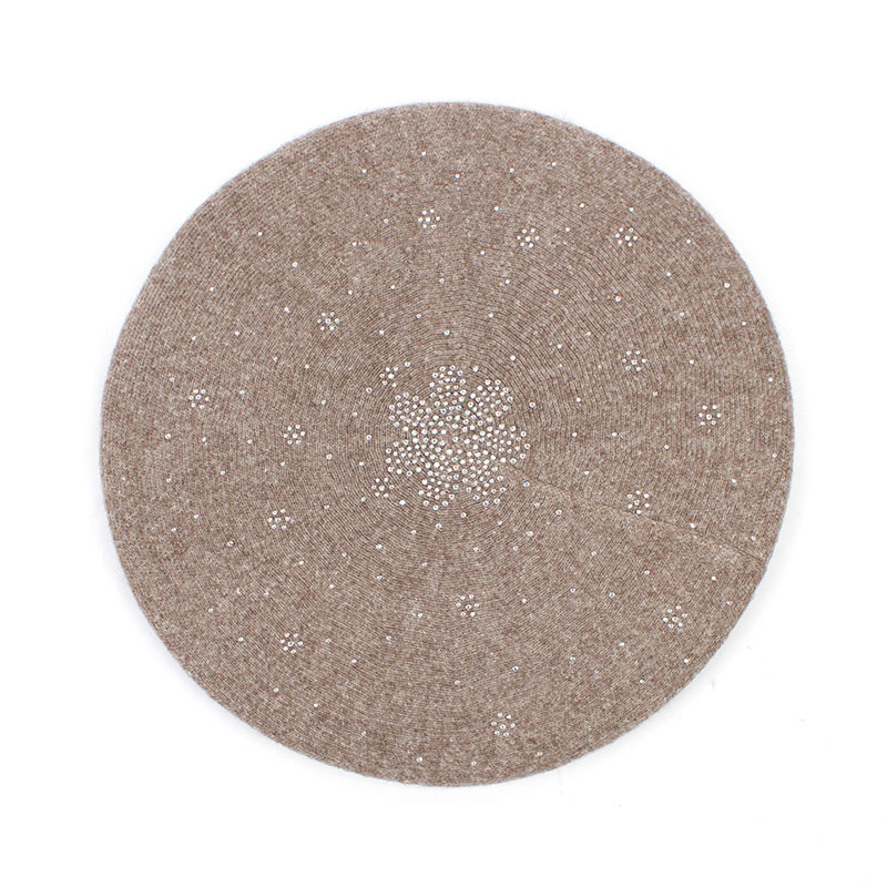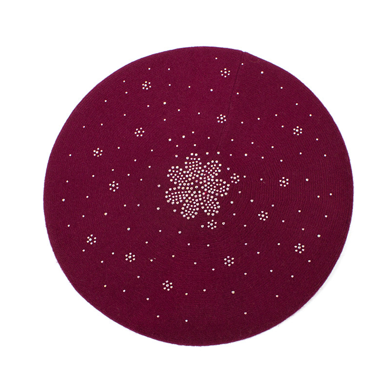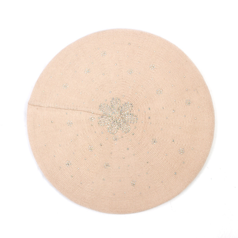 烫钻条纹贝雷帽韩版纯色百搭亮片针织蓓蕾帽秋冬季欧美休闲南瓜帽