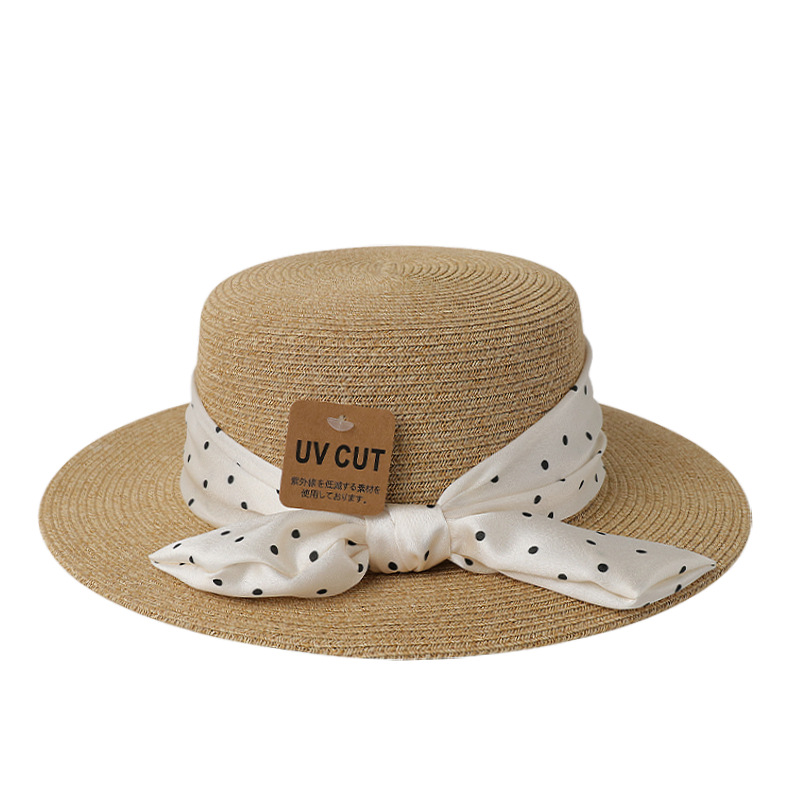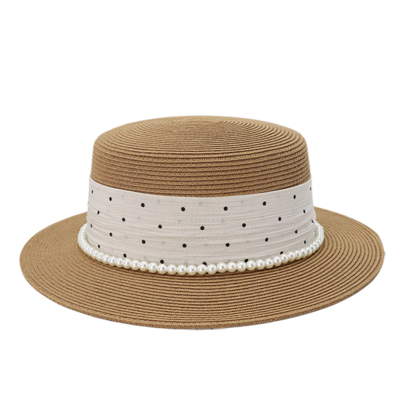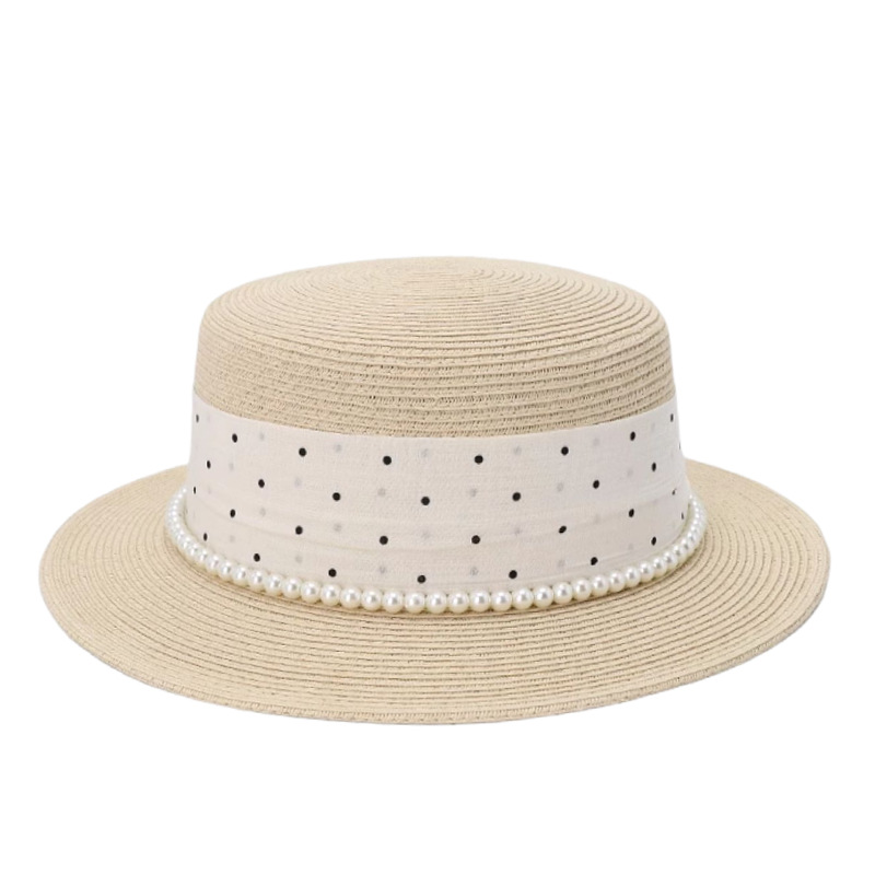 波点珍珠织带 + 米色平顶草帽