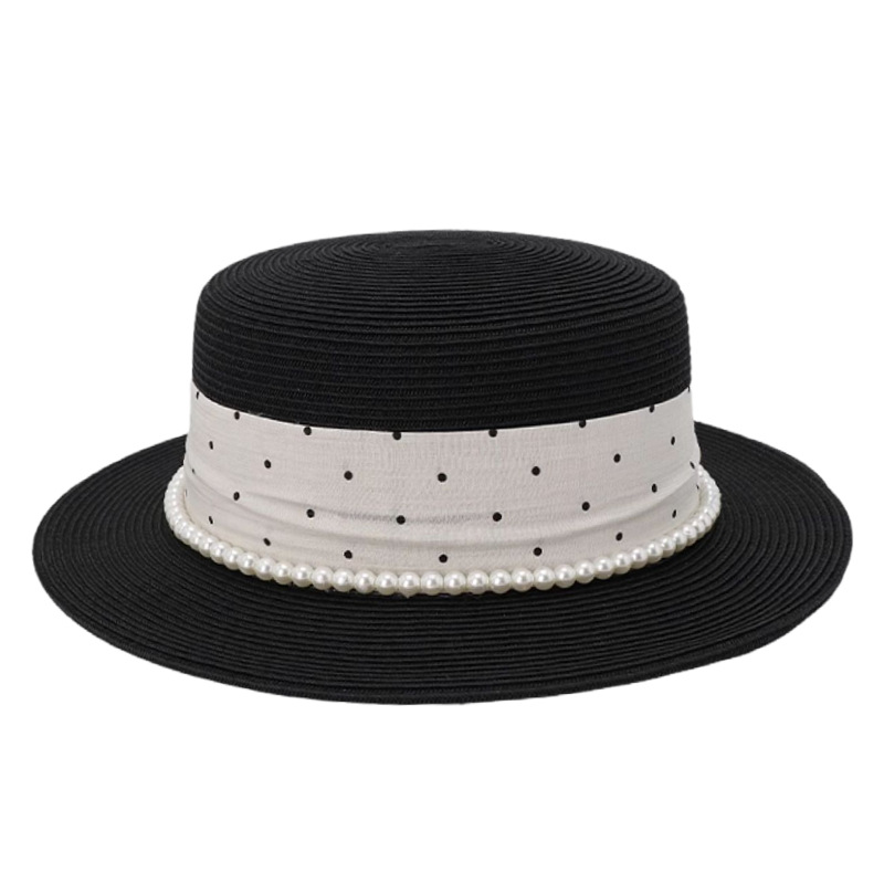 波点珍珠织带 + 黑色平顶草帽